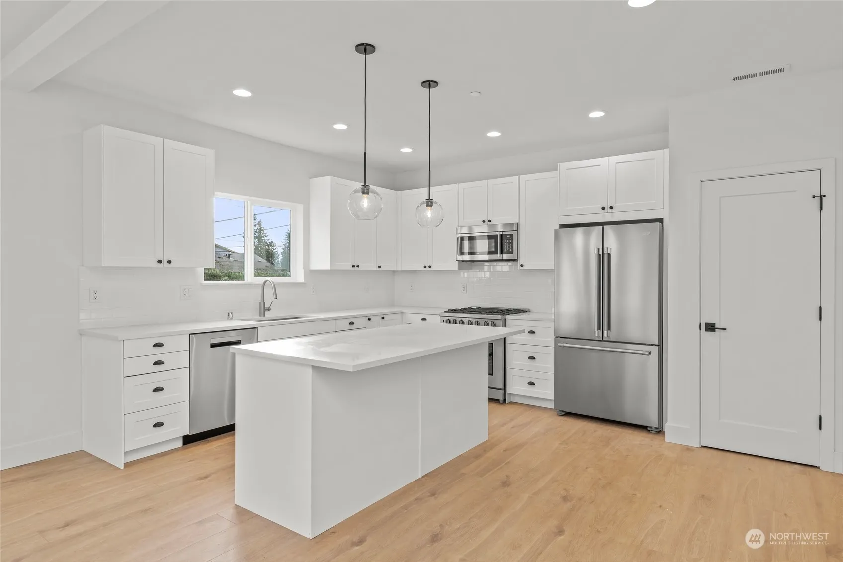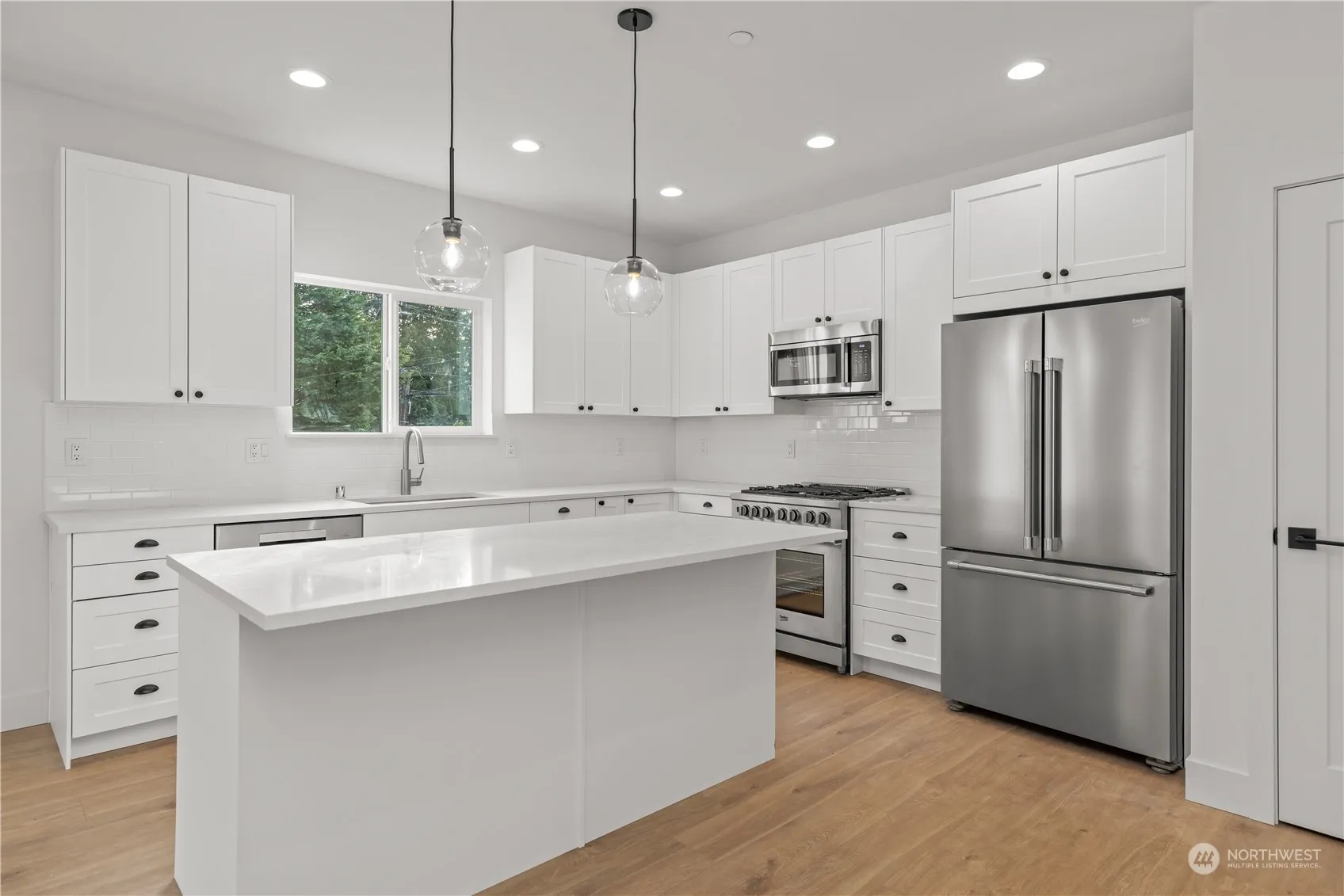 Luxury New Construction in Burien by J&T Development! Two level home with formal living room, office, & gourmet kitchen with large island opening to the family room and deck on the main level while all 4 bedrooms, 3 bathrooms, and laundry room are conveniently located on the upper floor. This home is complete with LVP floors, designer finishes, upgraded appliance package, 2 car garage w/driveway, and large yard on a 7,224SF lot. New street may not show on your GPS yet so look for us on SW 122nd Street between 1st Ave S and 4th Ave SW.