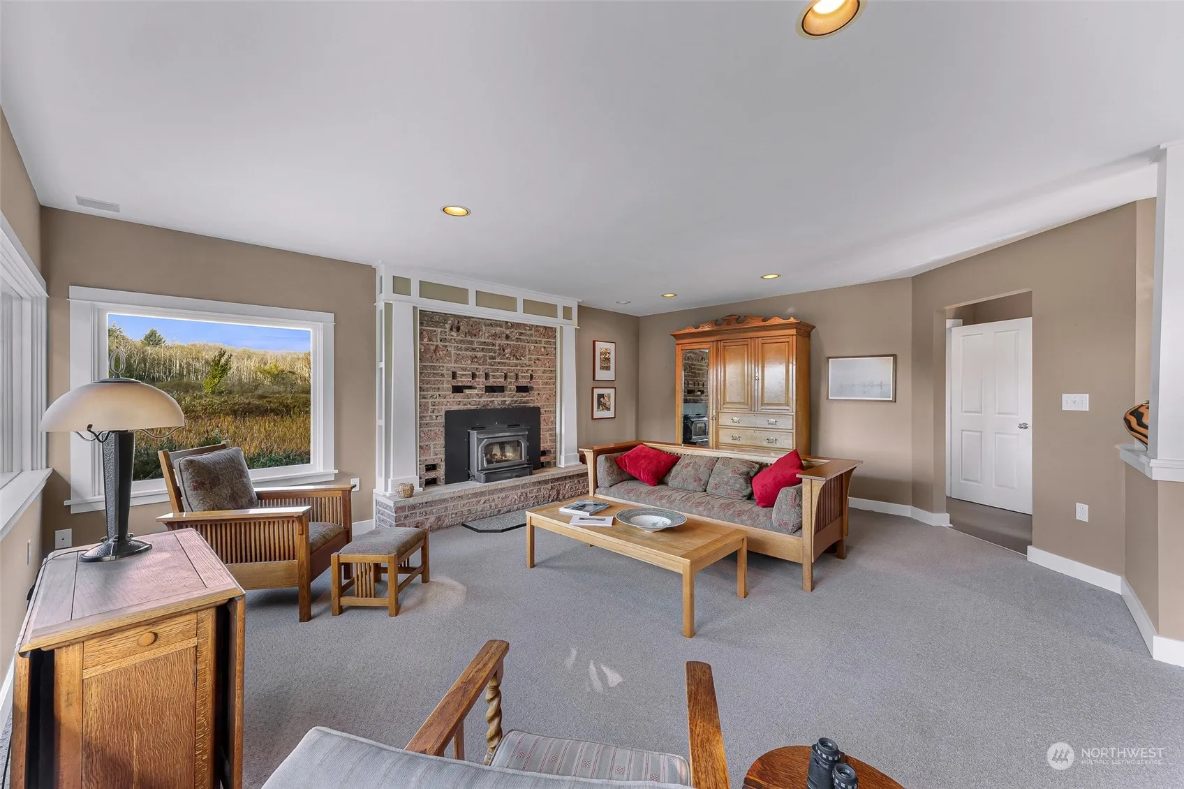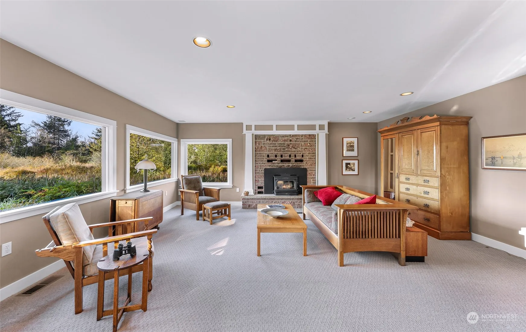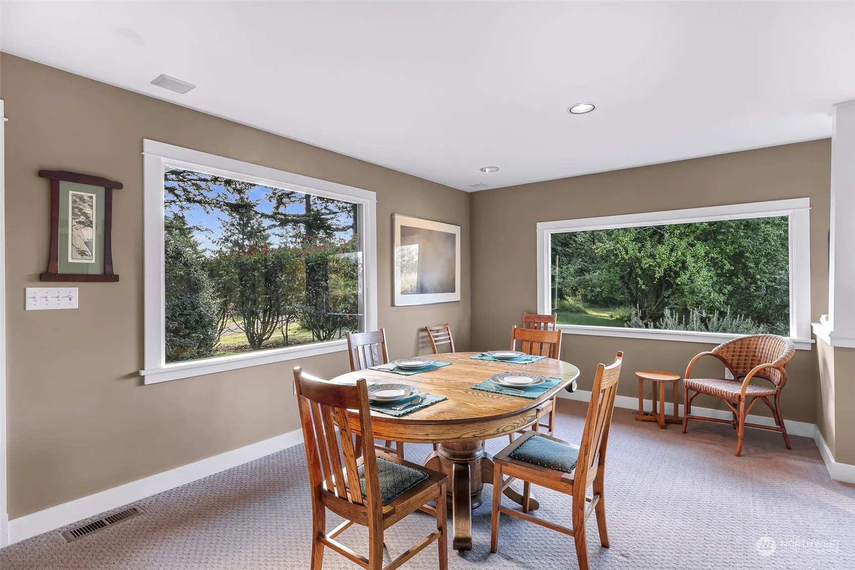 Discover your serene escape nestled in this convenient central island location. On a beautiful one acre parcel with fruit trees, gently rolling lawns, and surrounded by nature this home is the epitome of peaceful and private. The large main living room and dining room space features a cozy fireplace and a wall of windows perfect for admiring the natural beauty. The second floor can be used as an entirely independent unit with separate entrance, shared laundry, a kitchenette, living room, bedroom, full bathroom and rooftop balcony. Enjoy the best of island living with nearby access to pristine beaches, hiking trails, and vibrant local culture. Don’t miss the opportunity to make this idyllic retreat your own.