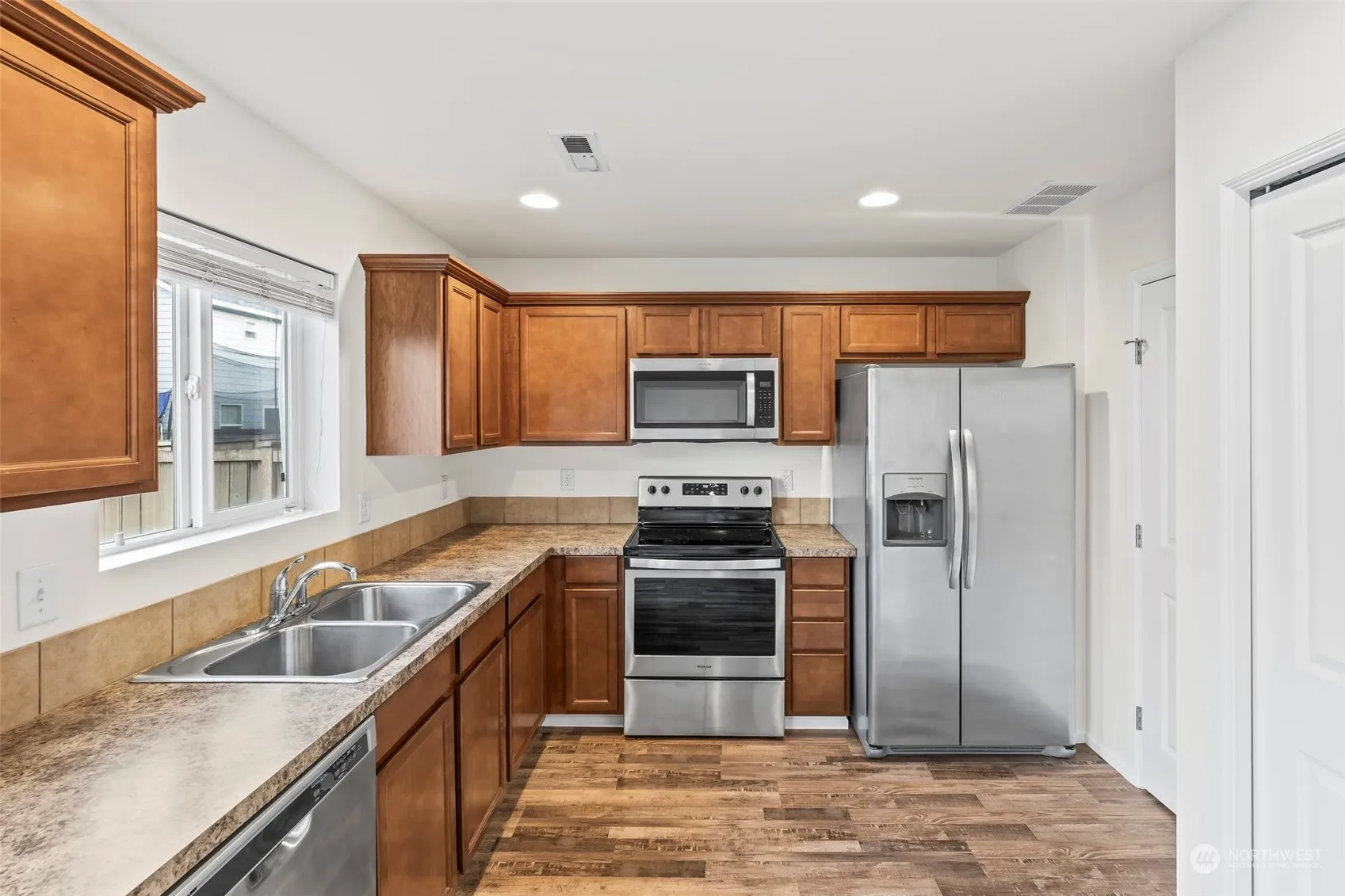 True gem of a home located in the highly sought after Radiance Community! Featuring an open main living area w/high ceilings, beautiful new LVP flooring & carpet along with lots of natural light. Kitchen with warm shaker cabinetry, stainless steel appliances, ample counter space & opens to the dining area. Additional features include a main level half bath, utility rm, ample storage & spacious guest bedrooms. Enjoy your primary suite boasting a private en-suite & custom walk-in closet. Low maintenance landscaping, fully fenced backyard with new sod & patio. Freshly painted inside & out, including trim. Also enjoy the many community parks & walking trails that Radiance has to offer. Close to 1-5, great schools, entertainment & all amenities.
