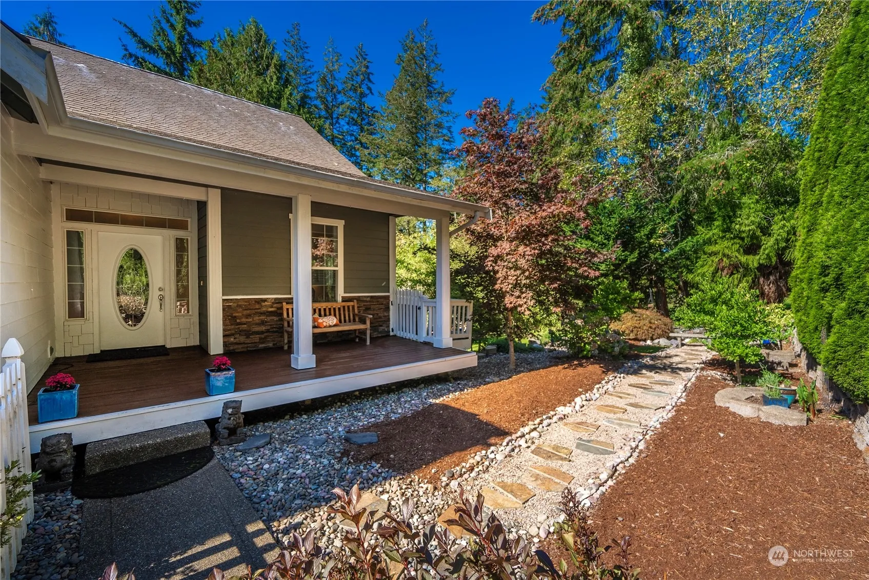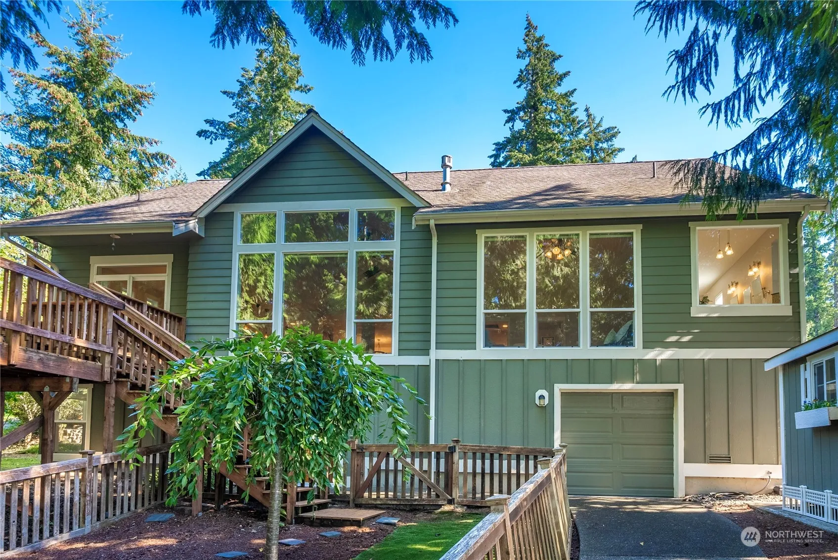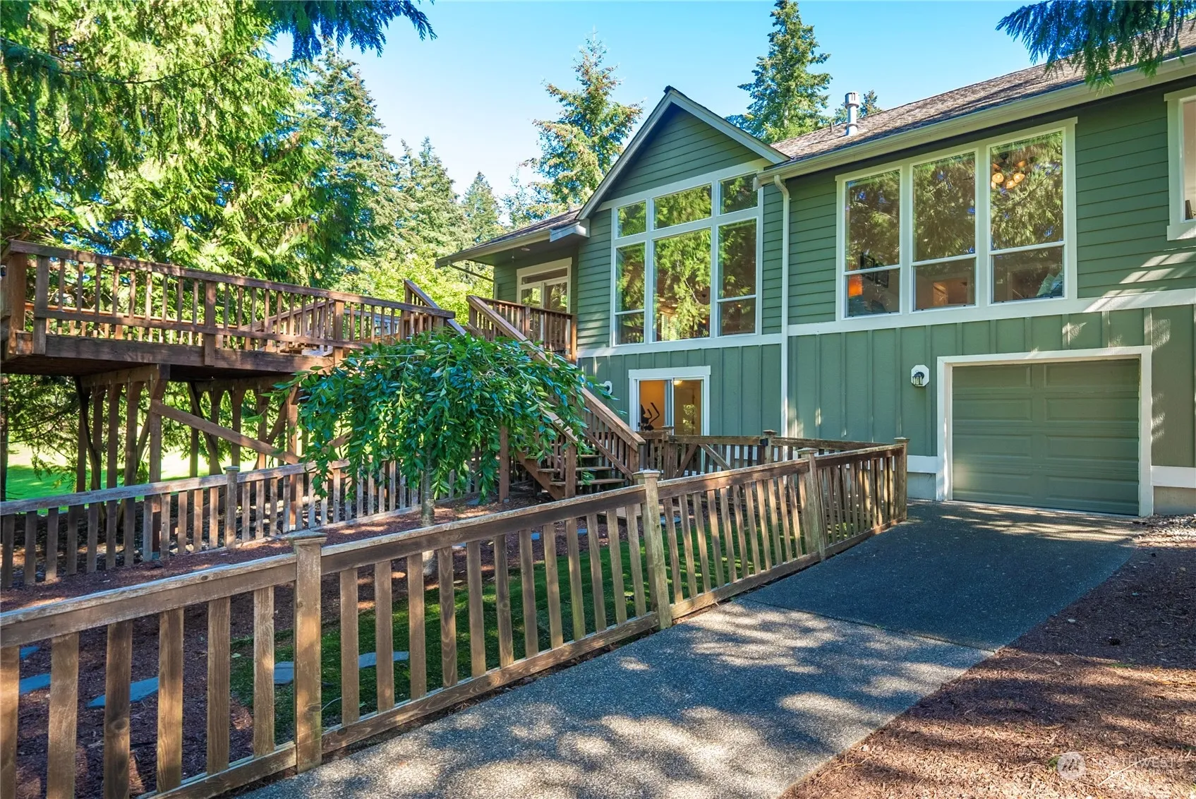 Stunning sunset views overlooking the golf course & pond in coveted Lakeland Village.Nestled in the cul-de-sac,the home boasts custom features throughout.Beach hardwood floors gleam throughout the main living area w/its open concept;Cathedral windows in the living room bring in the natural light & frame the view. Gourmet kitchen will please any chef w/its granite counters, island & double ovens. French doors lead into the office/den. A primary suite on the main level also brings big views w/ensuite primary bath ithat will be your sanctuary w/oversized shower, separate vanities/sinks & contemporary tile counters & flooring.Downstairs another finished room & rec room offers many possiblities. Tandem garage along w/a golf course garage below.