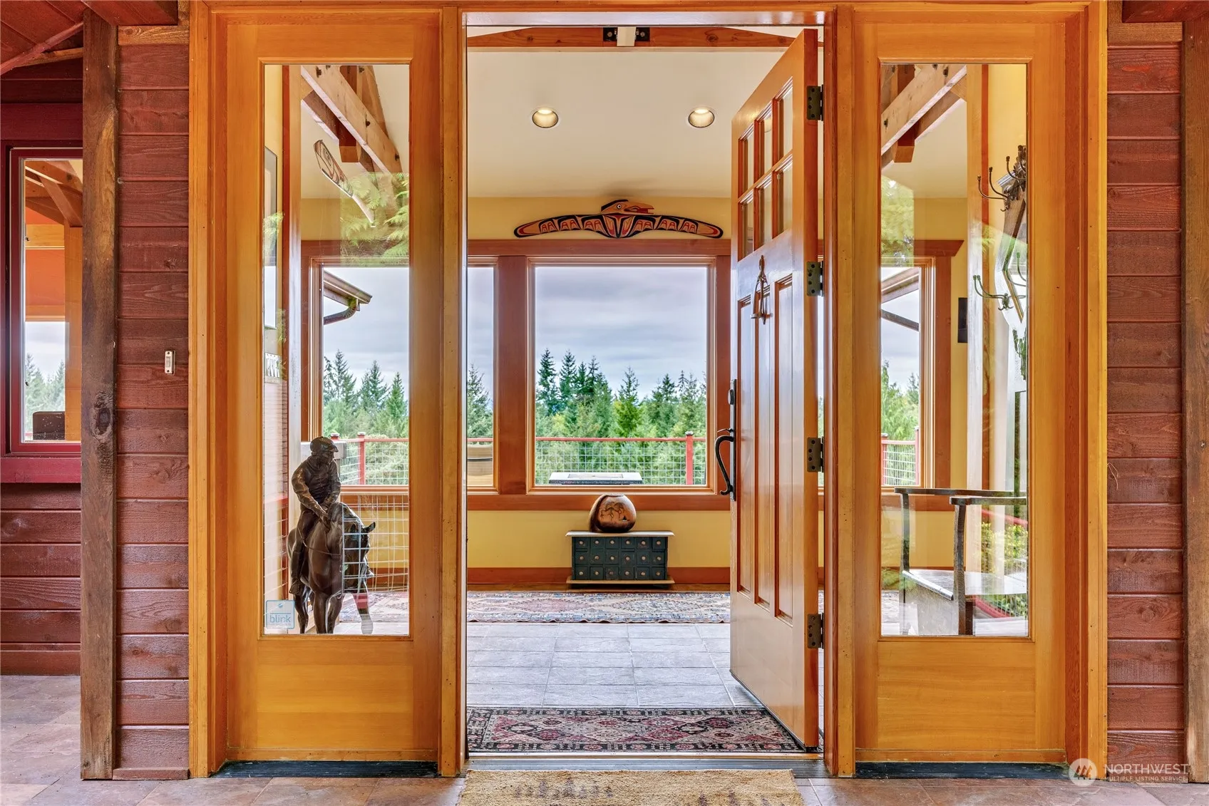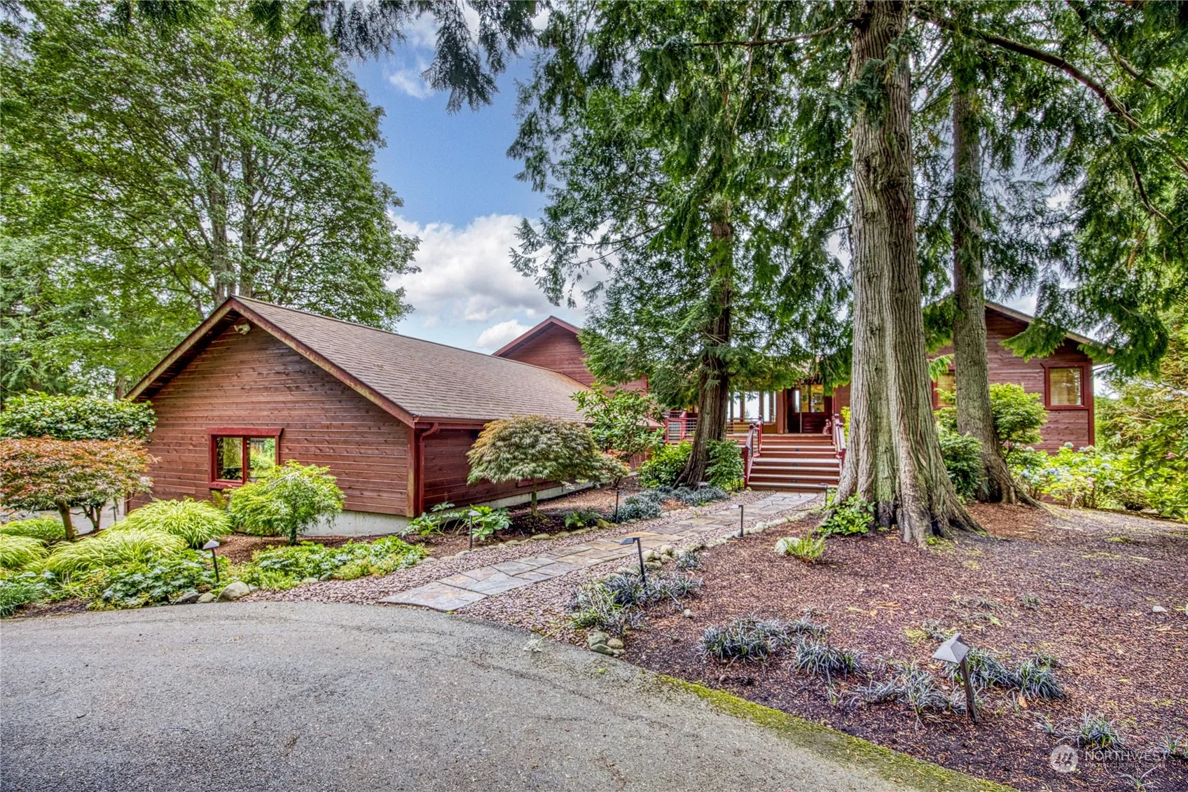 This stunning, light-filled Northwest Contemporary home is the perfect blend of comfort and architecturally pleasing features. Large, open beams offer structure and continuity. Huge windows take in the west-facing Olympic and water views. Heated pine floors provide warmth and a timeless patina unfolding from one room to the next. A grand reception hall greets you as you enter this fine home. Main level living, including a laundry center in the primary. Each bedroom offers privacy. One of the bedrooms offers flex space with a fireplace and built-in shelving. 3-garage car with workshop space, huge interior storage and a gated circular drive. Well-located in a community of other fine homes, convenient access but not too close to the HC Bridge.