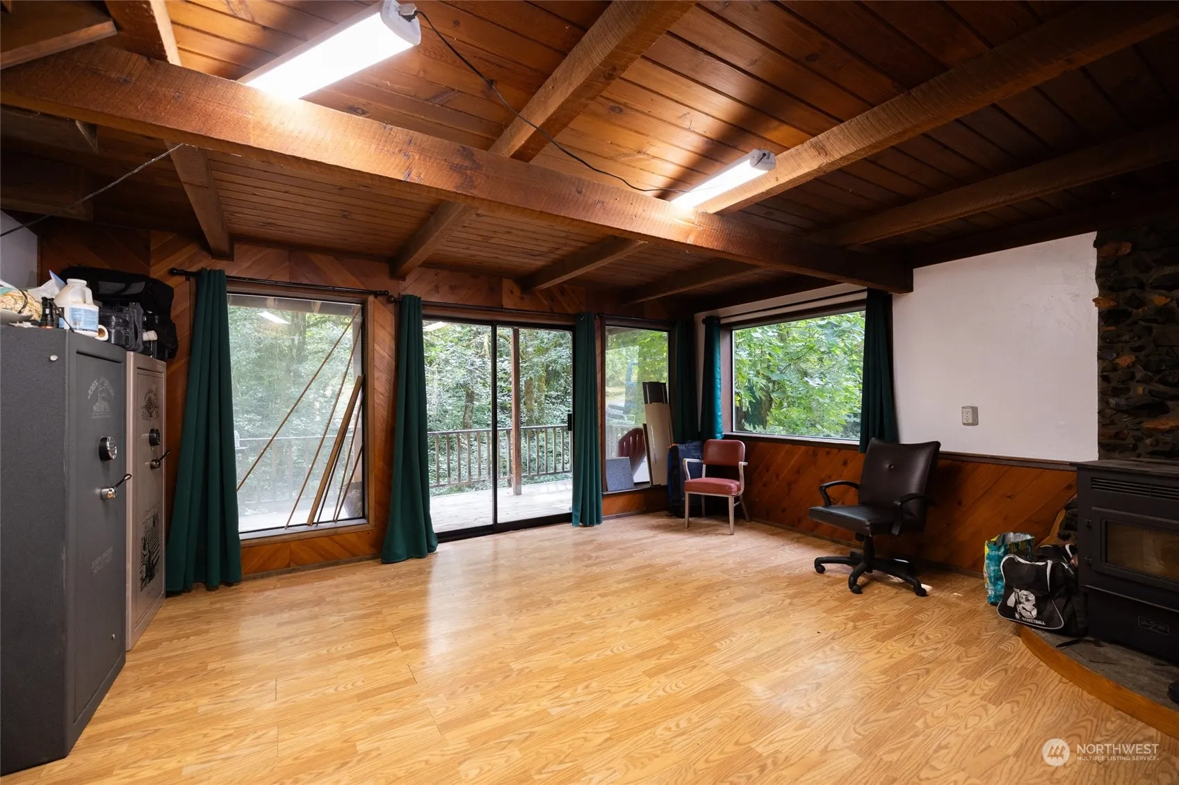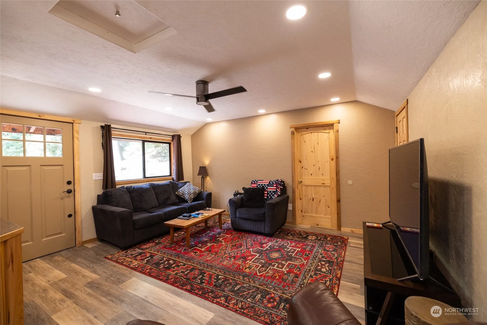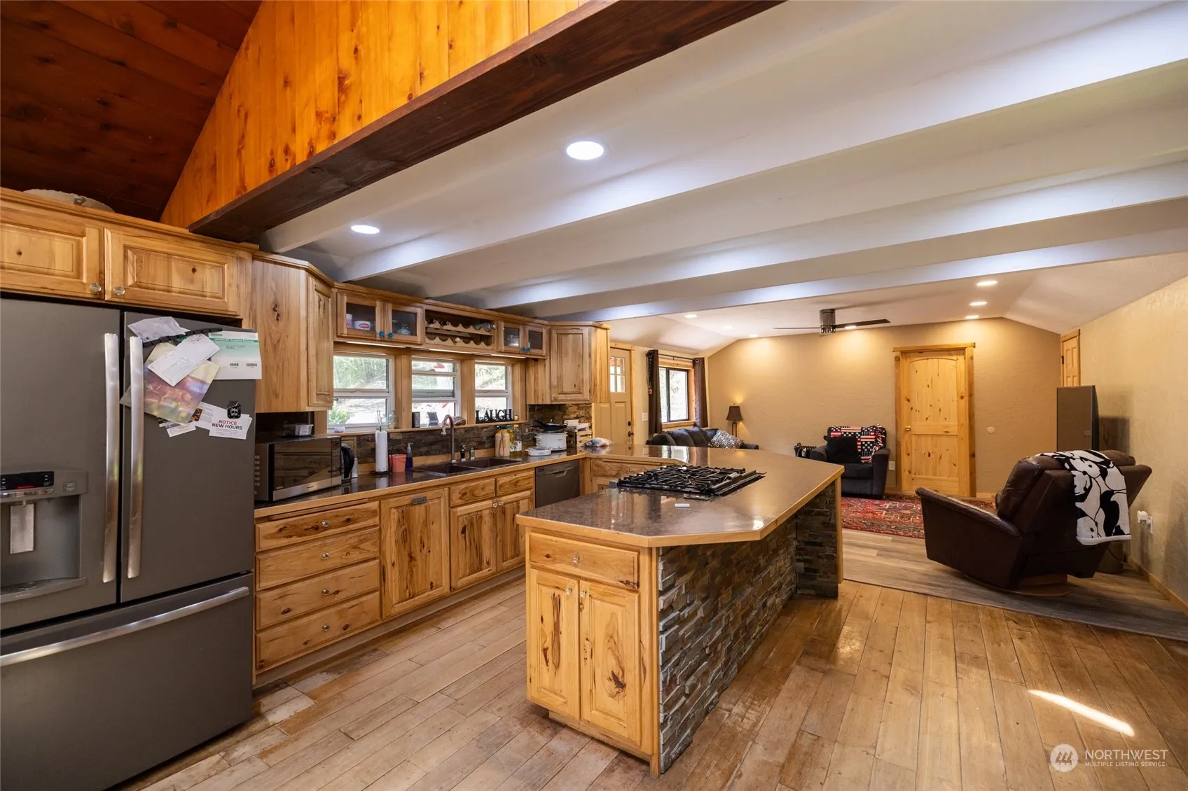 Welcome to this charming 3-bedroom, 2-bath home nestled in nature! Featuring an updated kitchen with a gas stove and refreshed bathrooms, this home is move-in ready. The primary bedroom upstairs offers an ensuite bathroom and a private deck overlooking a serene creek. The spacious family room also has a deck with stunning creek views—watch the salmon run in November! New carpet, ceiling fans, and heated floors in the shop add comfort. Enjoy the rustic charm of the outbuildings and cabin. A perfect retreat for nature lovers, with modern amenities and rustic charm combined!