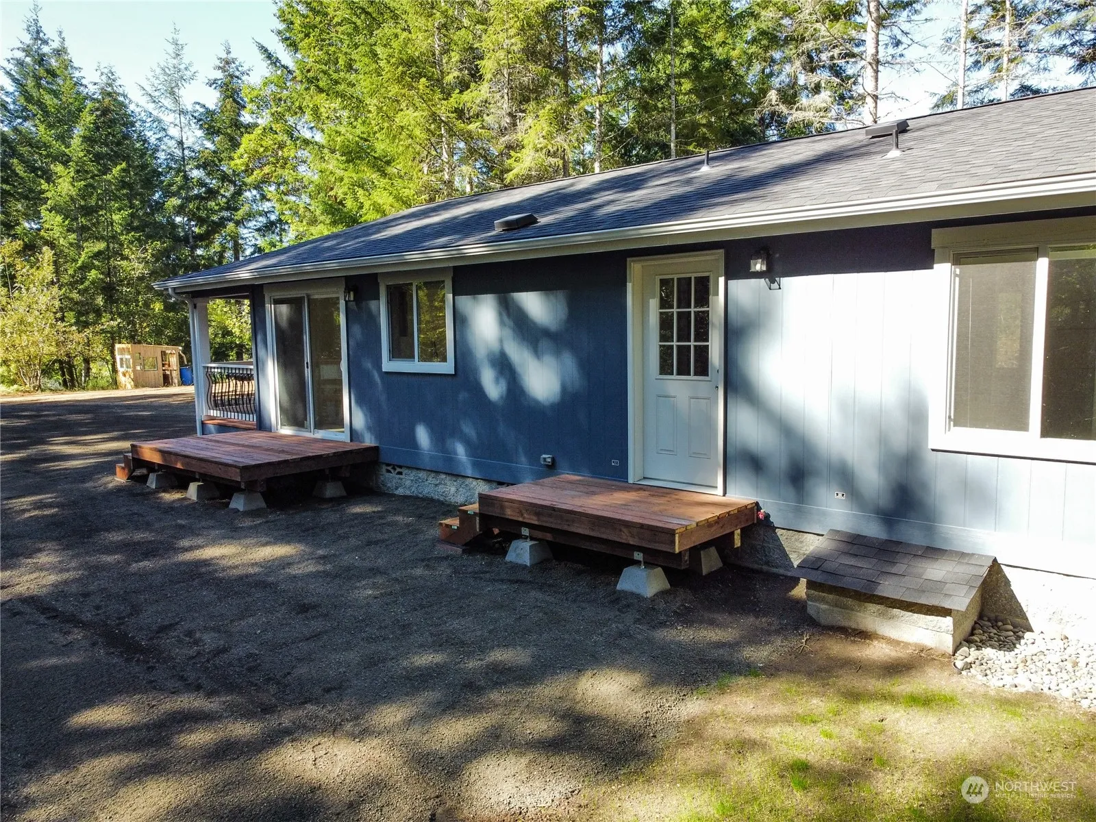 Brand new 2024 3bd/2ba well-designed light & bright home! You’ll be sitting stylish on your private serene 1.58 ACRES w/room to build your shop/garage & garden areas. Featuring a covered front deck entry & side deck off the Dining area. Nice island bar in the kitchen. SSAppliances, ample cupboard space/drawers, Walk-in Pantry. Mudroom/Laundry w/W/D. This home boasts nice Primary BD w/private ensuite & walk-in closet, gorgeous ambient light thru tall windows. Super nice big ceiling fan in living space. RV hookups parking site w/P/W! Much to love here so hurry to find if this belongs to you! BVE Beach lot on Hood Canal for members! NO HOA. Driveways are 3/8″minus chipped Basalt. Site prep is phenomenal!