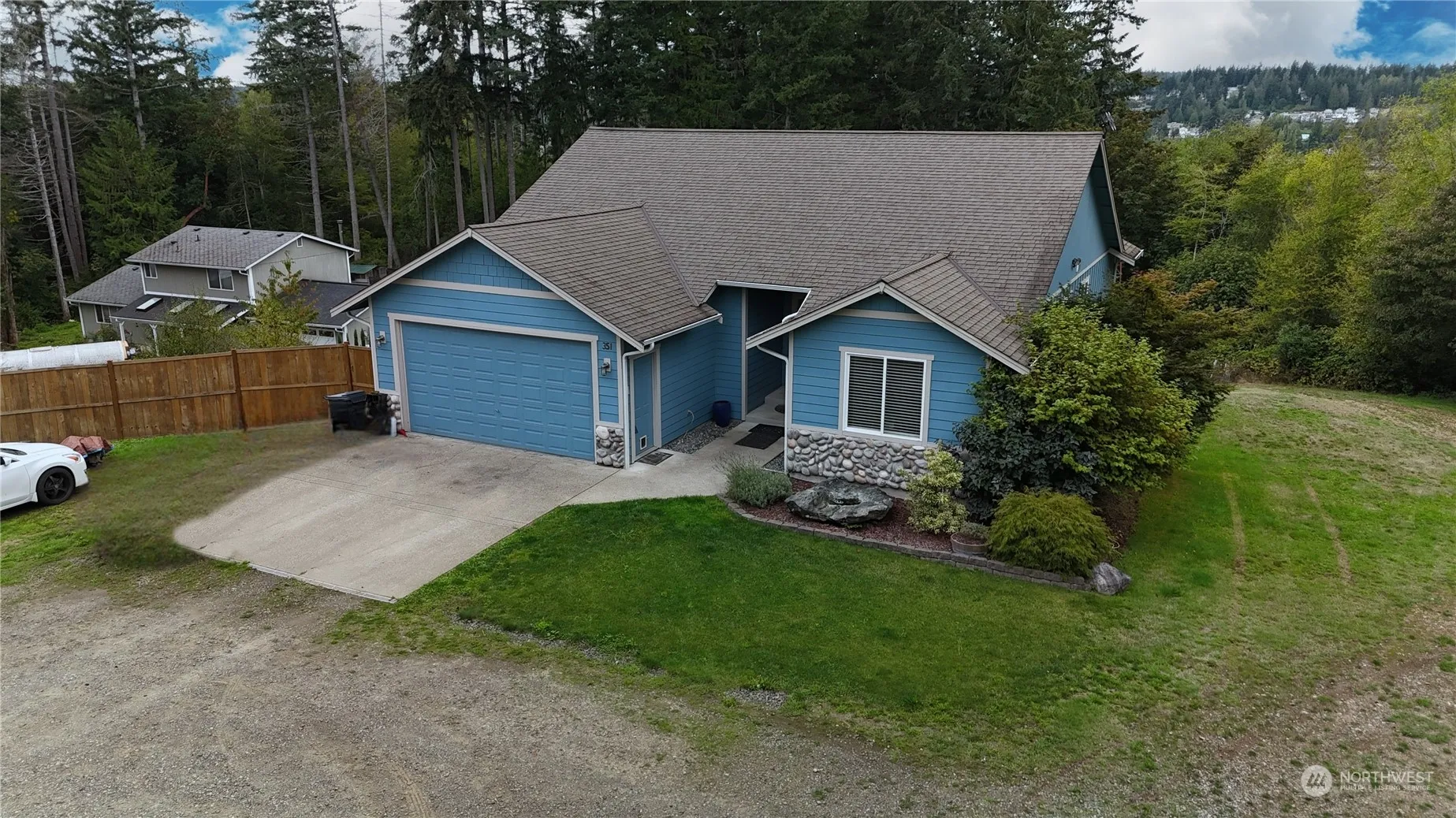 Discover all that the PNW has to offer with this expansive 2900sqft two-story home set on 1.6 acres. The residence features a main-level master suite complete with a walk-in shower and direct access to an elevated deck with views of the sprawling back acreage. High ceilings and hardwood floors welcome you into a spacious living room. Two more rooms share a hallway bathroom on the main floor. The lower level includes another bedroom with an en-suite bathroom and a vast recreational room. Additionally, there’s a finished walk-in storage space, ideal for use as a wine cellar. Seize the opportunity to own this ideally situated home—schedule your viewing today.