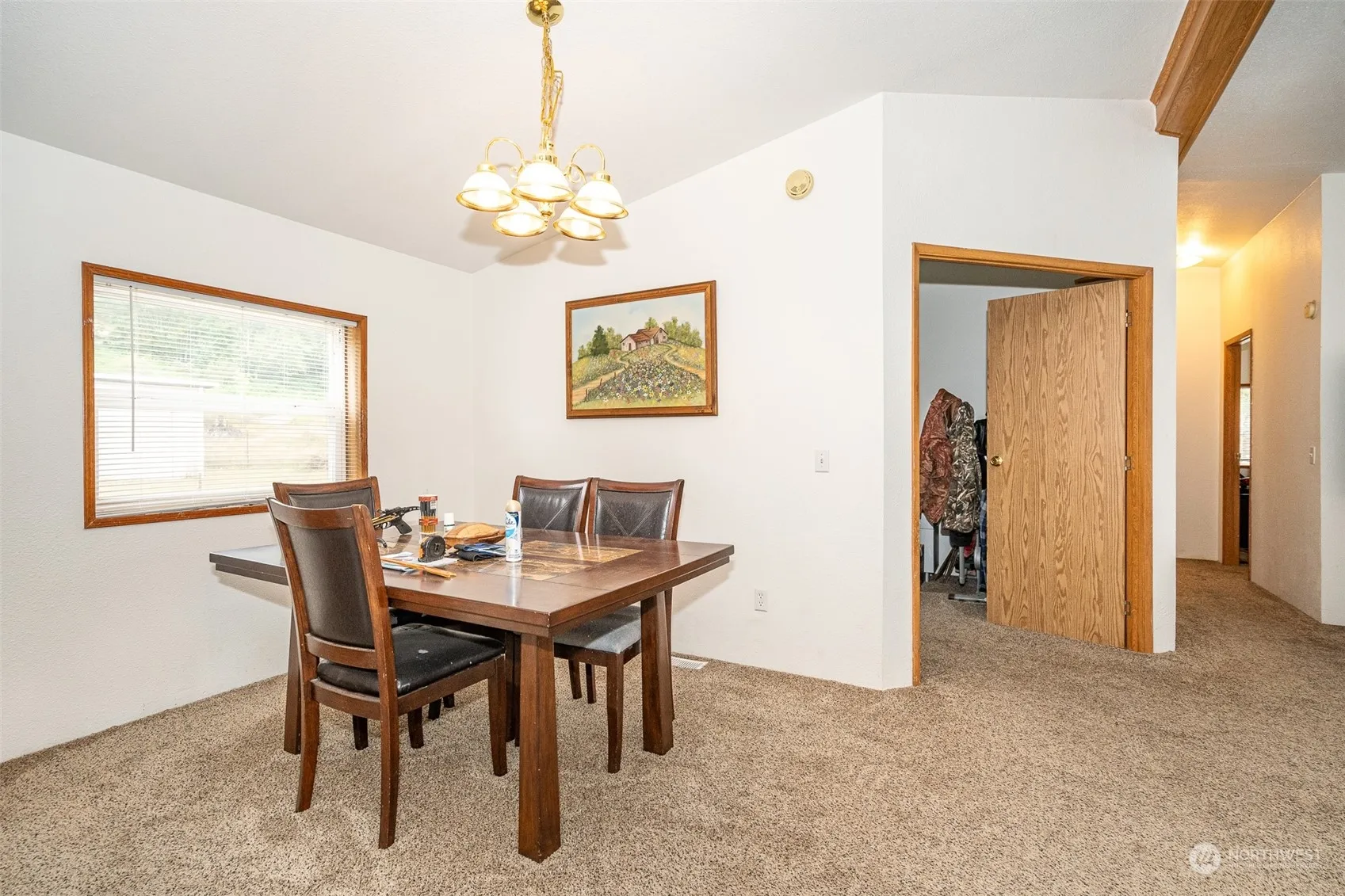 • Interior Features Bath Off Primary, Double Pane/Storm Window, Vaulted Ceiling(s), Walk-In Closet(s), Wall to Wall Carpet, Dining Room