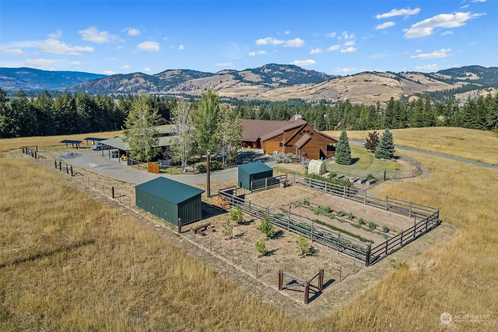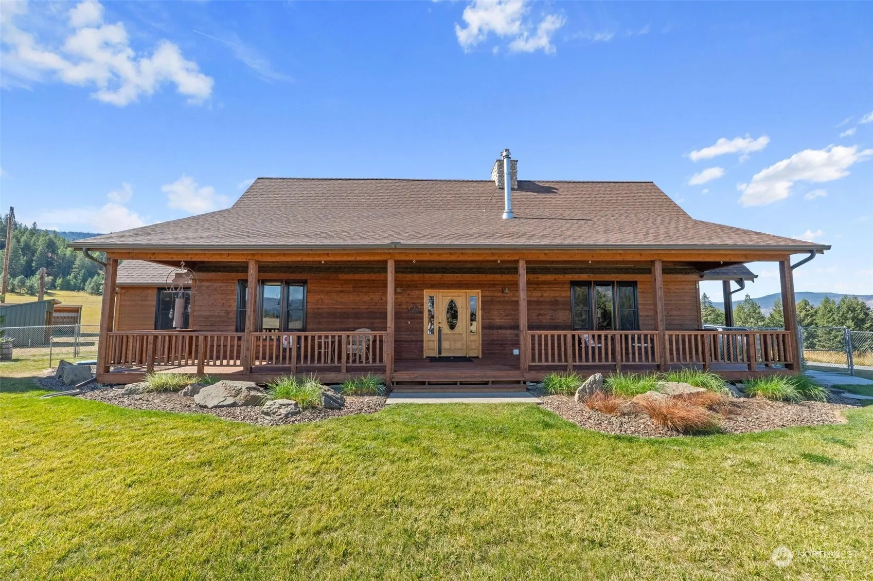 Escape to your own custom lodge! Surrounded by magnificent mountain views, this exceptional 2651 sq. ft. home is situated on 20-acres and features three spacious bedrooms including two main floor Master Suites & four bathrooms. Rough cut wood and yellow pine ceilings give the home its rustic lodge-like feel along with a beautiful river rock gas fireplace. Granite counter tops, stainless steel appliances and a classic Heartland wood cook stove accentuate the stunning five-star Chef’s Kitchen. Additionally, the home has two porches, wood case windows, new solar, new drilled well, large utility room, 2-car garage, 40 x 60 shop w/bathroom, extra storage, 14-foot garage doors, RV hookup, fenced fire pit, garden area & much more.