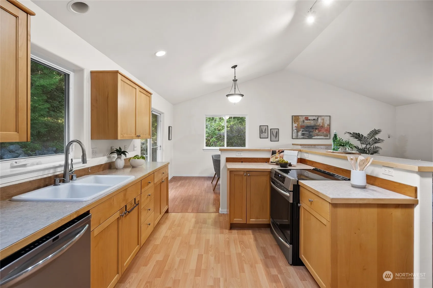 This attractive rambler lives larger than its square footage thanks to high ceilings, skylights & a great room concept that encompasses the spacious kitchen, dining area & living room. A cozy propane hearth will keep you toasty in the fall & winter, while the large picture windows allow abundant light in year round. Updated bathrooms, new interior paint & new carpet mean that this peach is turn key. Convenient location, just minutes from ferries, Poulsbo & Port Townsend. Partially fenced, well maintained mature landscaping, pretty covered porch & a large corner lot. This home is an easy choice if you are looking to simplify your lifestyle in a serene location, you will also enjoy all of the amenities the LMC Beach Club membership provides.