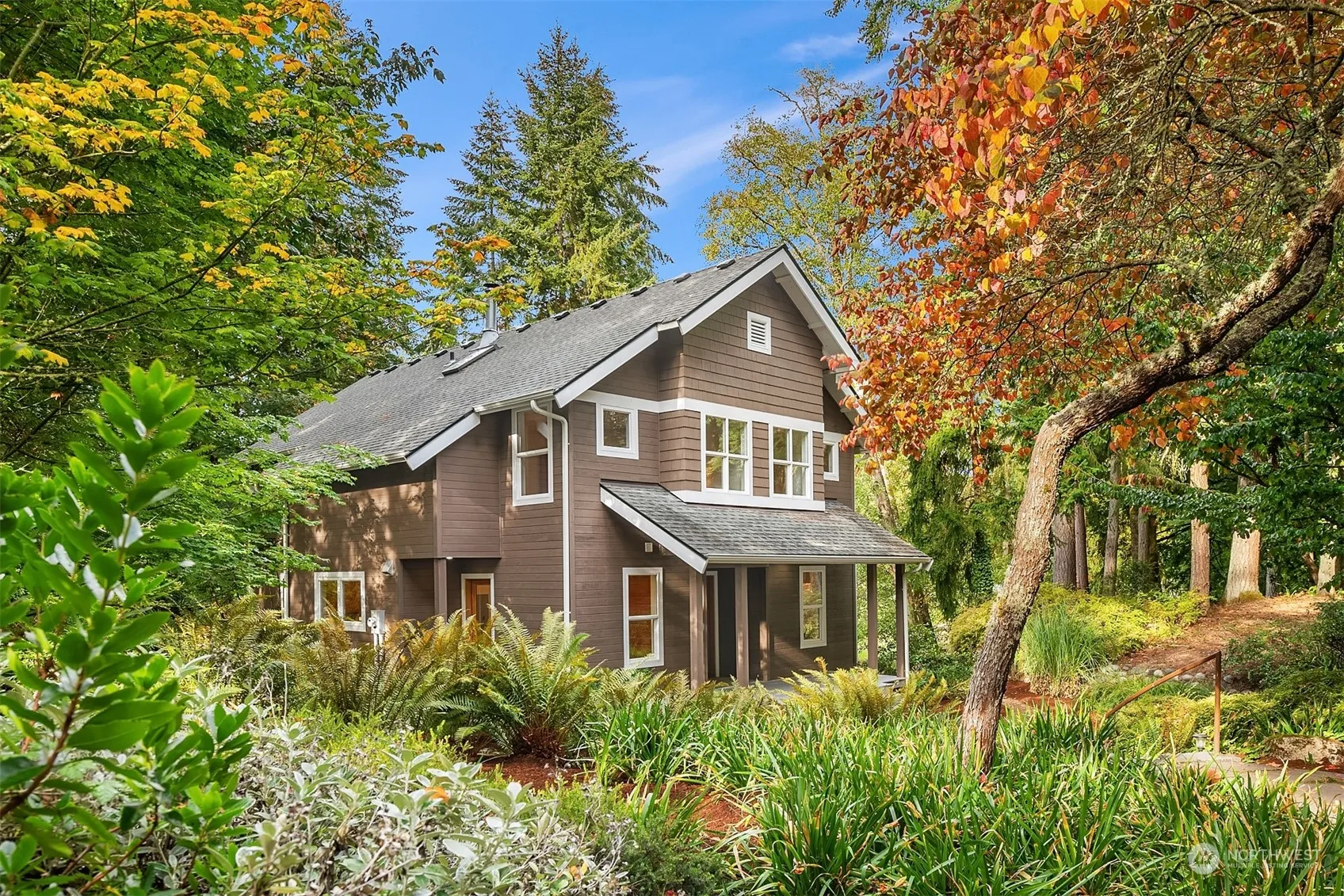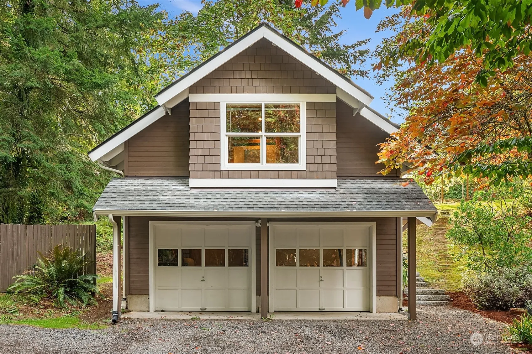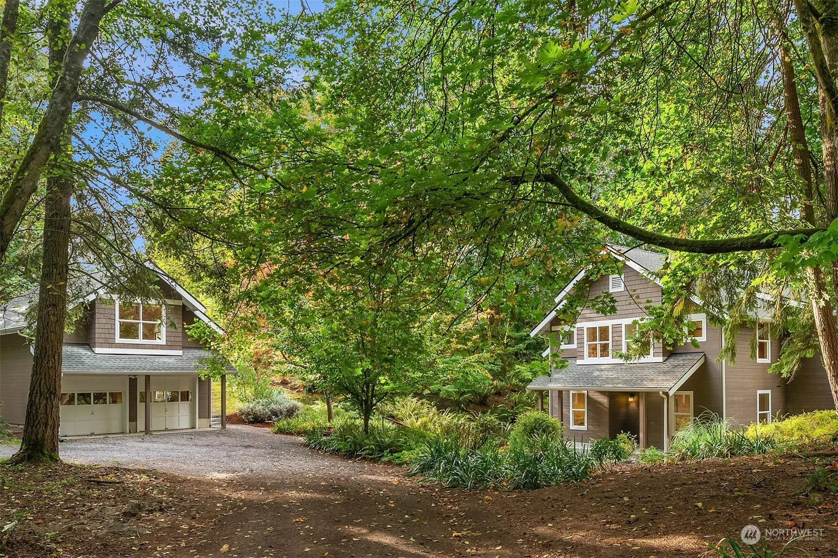 Rare opportunity to live the ultimate Vashon experience. North island location makes biking to catch the ferry easy breezy, but who would want to leave this beautiful 2.3 acre parcel and idyllic home? Watch birds & wildlife from the endless windows of the main house, built by renowned local architect as his own home. 3beds/2baths up, including vaulted primary suite. Cozy central fireplace & separate office/guest bed on main, clear fir doors & carpentry throughout. Oversized 2 car garage has spacious & functional studio/apartment above that could be rented or enjoyed. Quiet & private lot has ideal blend of shade & sun w/mature landscaping, grassy meadow, & massive homestead-worthy garden with raised organic beds fenced for deer.