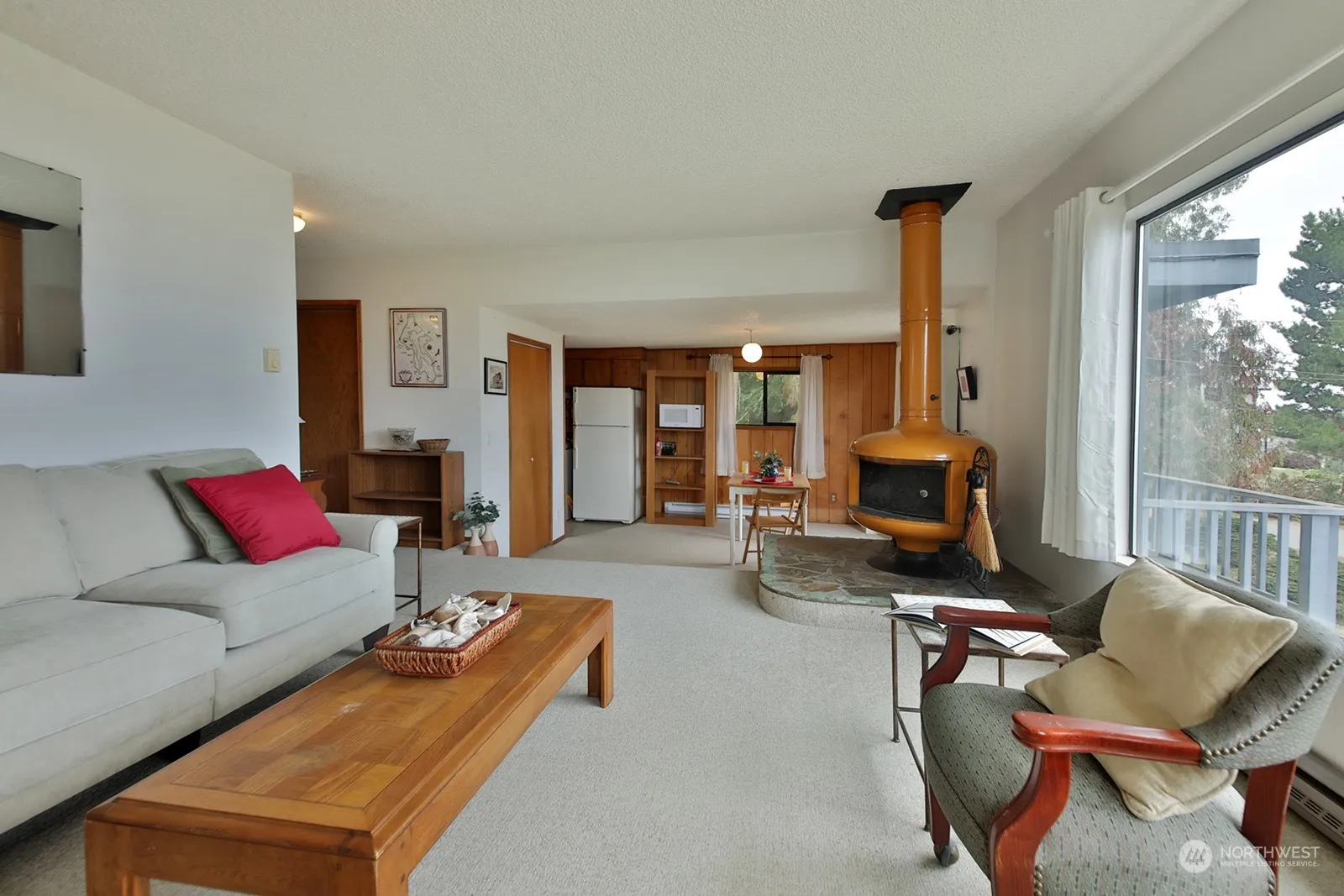 Bring your dreams, your imagination & make plans to finish the ground level of this 2 bedroom super back beach home while you live upstairs in the completely finished one-bedroom 3/4 bath apartment with separate entrance & its own kitchen. Beautiful views over the water from the good-sized living room & cozy wood burning fireplace for those chilly autumn evenings. Or rent the furnished upstairs & bring in some income while you plan. Options are many. Community provides for beach access & you are just a hop, skip & a jump to Langley’s seaside village with its charming shops & restaurants. Enjoy sunrises, beach walks & colors of the sunsets thru summer. Corner lot w/space for picnics, fun games & just hanging out in this wonderful community.