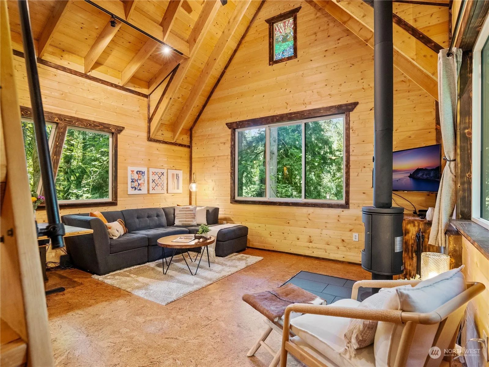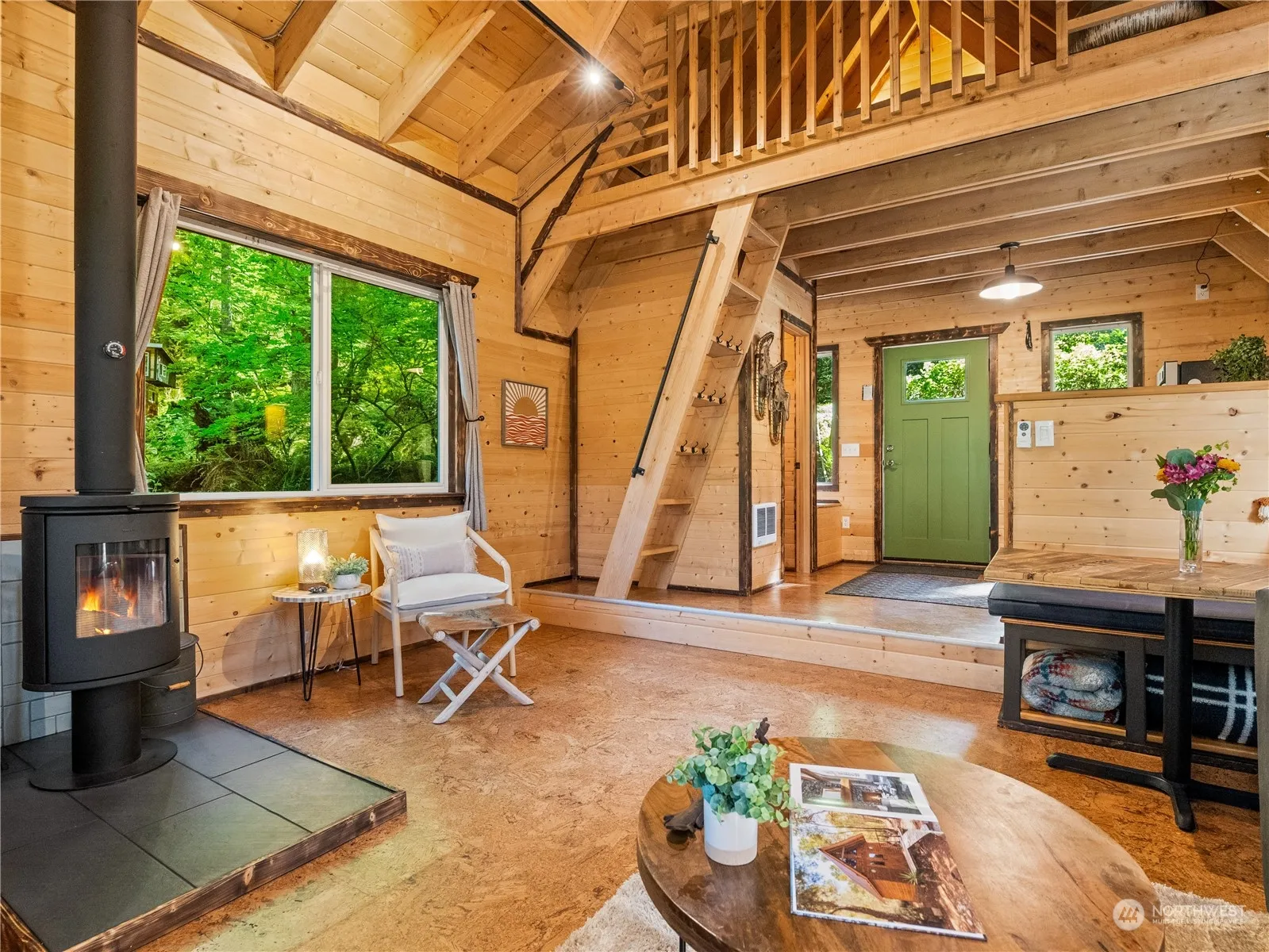 Escape to the serenity of this hillside cabin nestled in a private gated Skykomish River community. Thoughtfully blending rustic charm with modern design, this 2019-built cabin showcases unique features like stained glass windows, vaulted ceilings, cork floors, and wood and tile accents throughout. The quaint interior, warmed by a cozy wood stove, features a loft bedroom and expansive windows that invite in peaceful forest views. Amenities include satellite internet, deck, firepit, and an eco-friendly incinerating toilet and water holding tank. Stone’s throw from charming Index, this successful turnkey Airbnb investment opportunity, offers community riverfront, access to the PNW’s best recreation, and Stevens Pass skiing just 35 mins away!