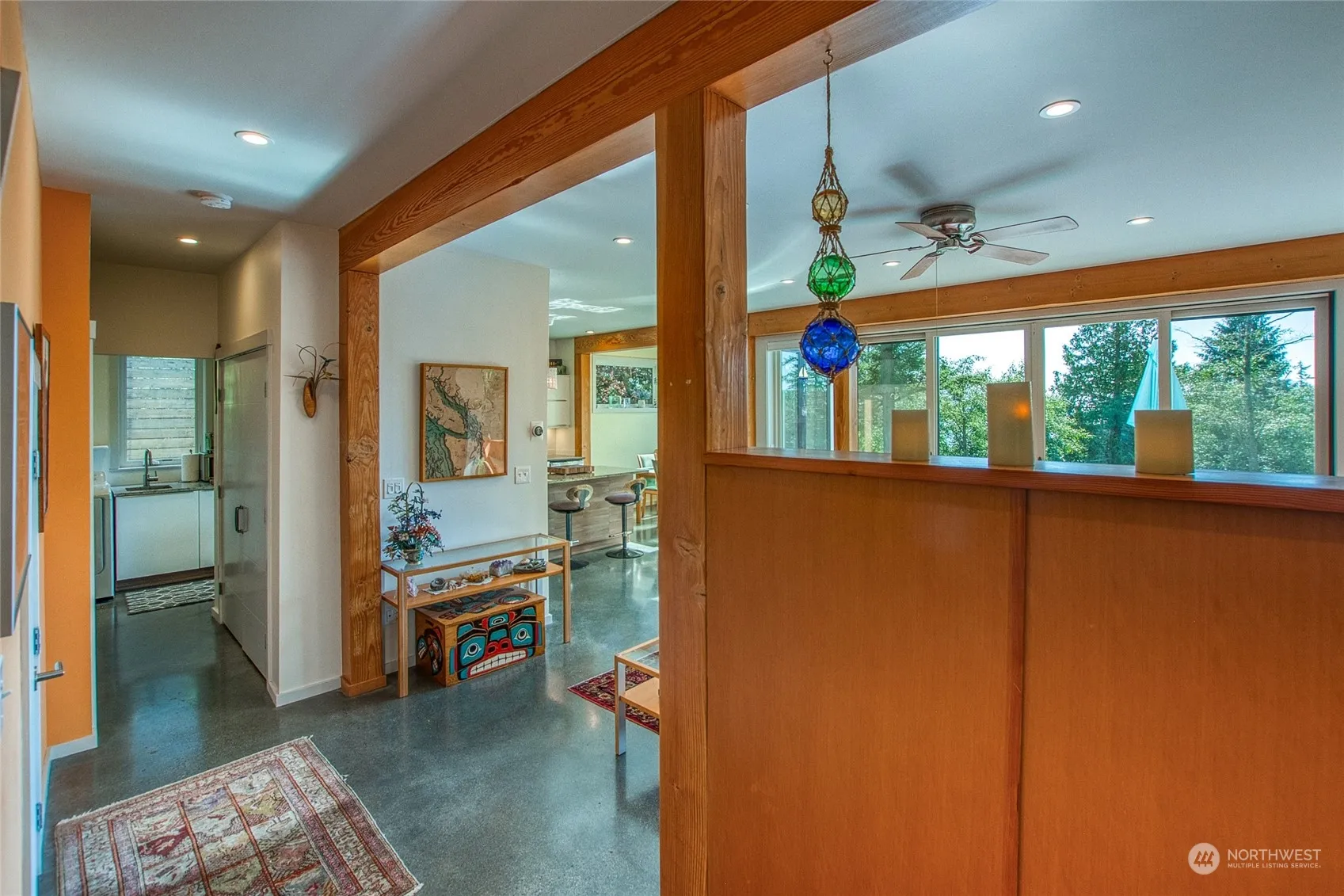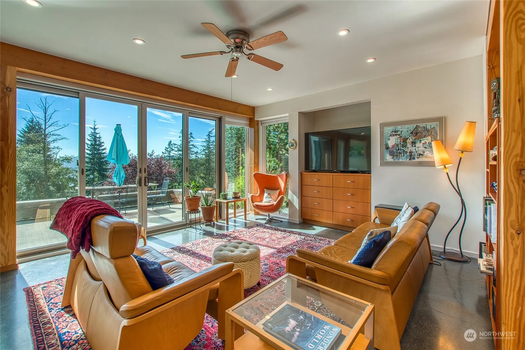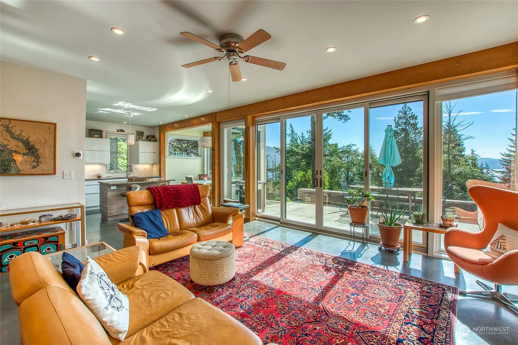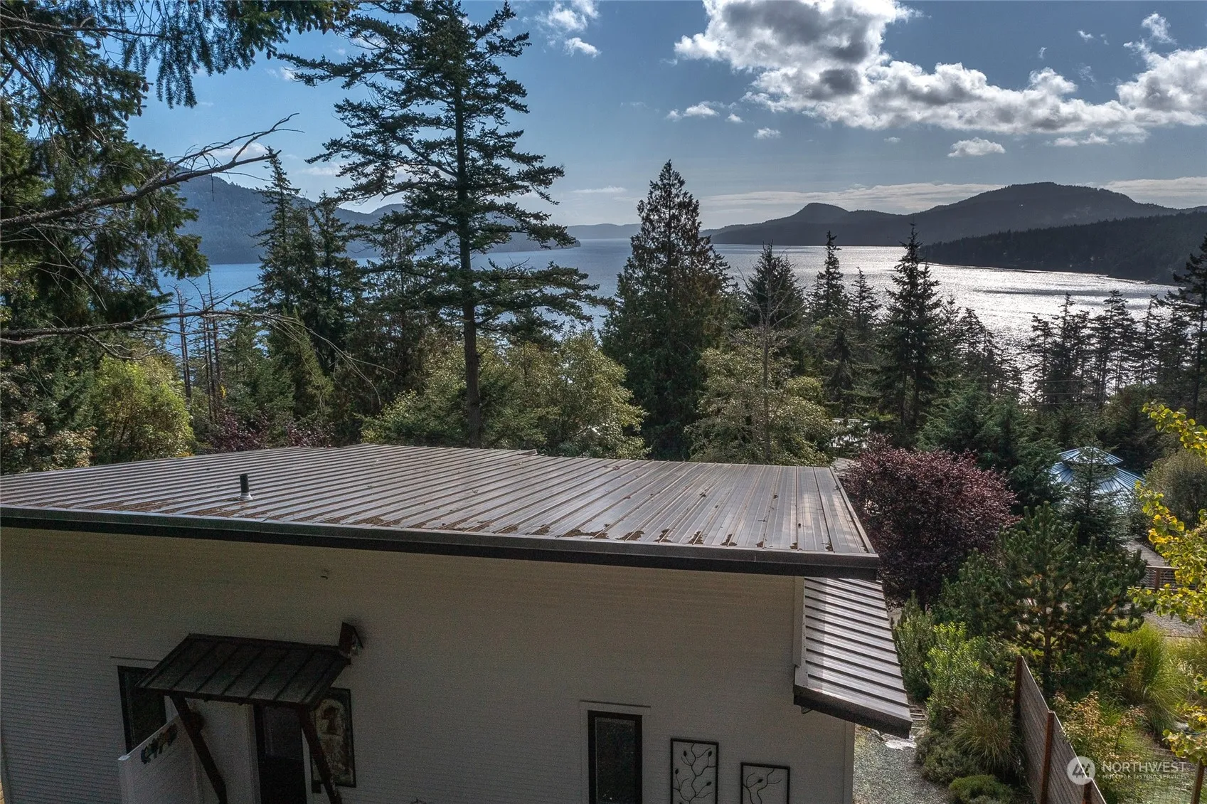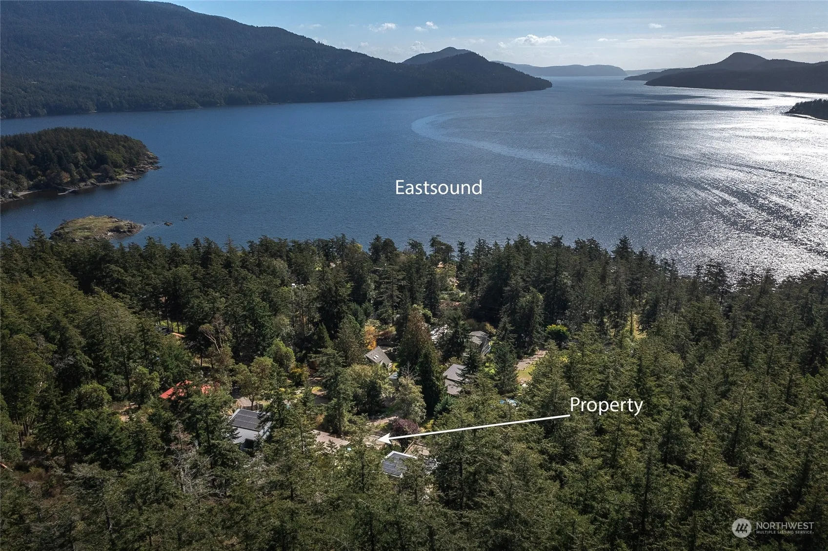 MODERN MARINE VIEW HOME located just outside Eastsound, atop Geer Lane hill overlooking East Sound to the south. You will instantly feel at home, relaxed. When you arrive, open the double sider out to the veranda and take in the fresh Salish Sea air. Convenient to Eastsound Village amenities, walking distance to Waterfront Park. Bright, open concept living/kitchen/dining, 3BD/2BA, with a stylish contemporary flair throughout. Energy efficient LED lighting, radiant heat, & heat pump. Virtually maintenance free landscaping. Southerly views down the sound indoors and out with covered veranda and patio. Detached 2 car garage. Annual road maintenance fee of $200. Vacation rental permit is active.