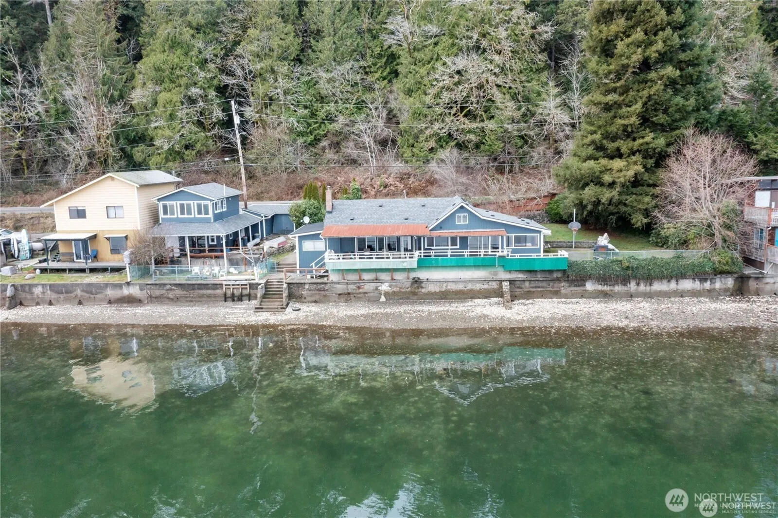 A Piece of Paradise found on Hood Canal, with expansive views facing to the east including Mt. Rainier, Beautiful Sunrise Views plus reflective Sunset views. Oysters, crabs, shrimp,clams, salmon even whales are found in these magical waters. This unique property is a stay vacation home. Many updates; Roof 5 years ago, Bathroom and floors, 4 years ago, Kitchen new cabinets and granite countertops, 8 years ago, interior paint 2 years ago, exterior paint 1 year ago. 2020 garage updated into ADU. All the furniture in the main home is included. Kayaking, fishing, swimming, gazing at the night sky, and all the nature that surrounds you is heavenly. Seller has used main home as a vacation rental for nearly 5 years:. Tenant lives in the ADU.
