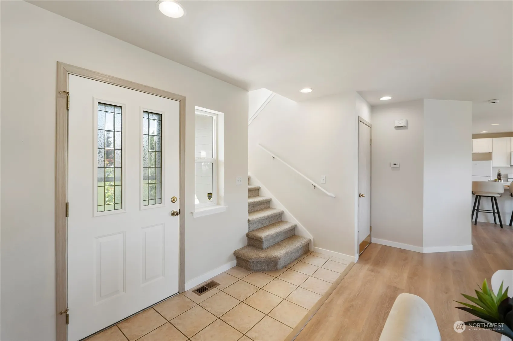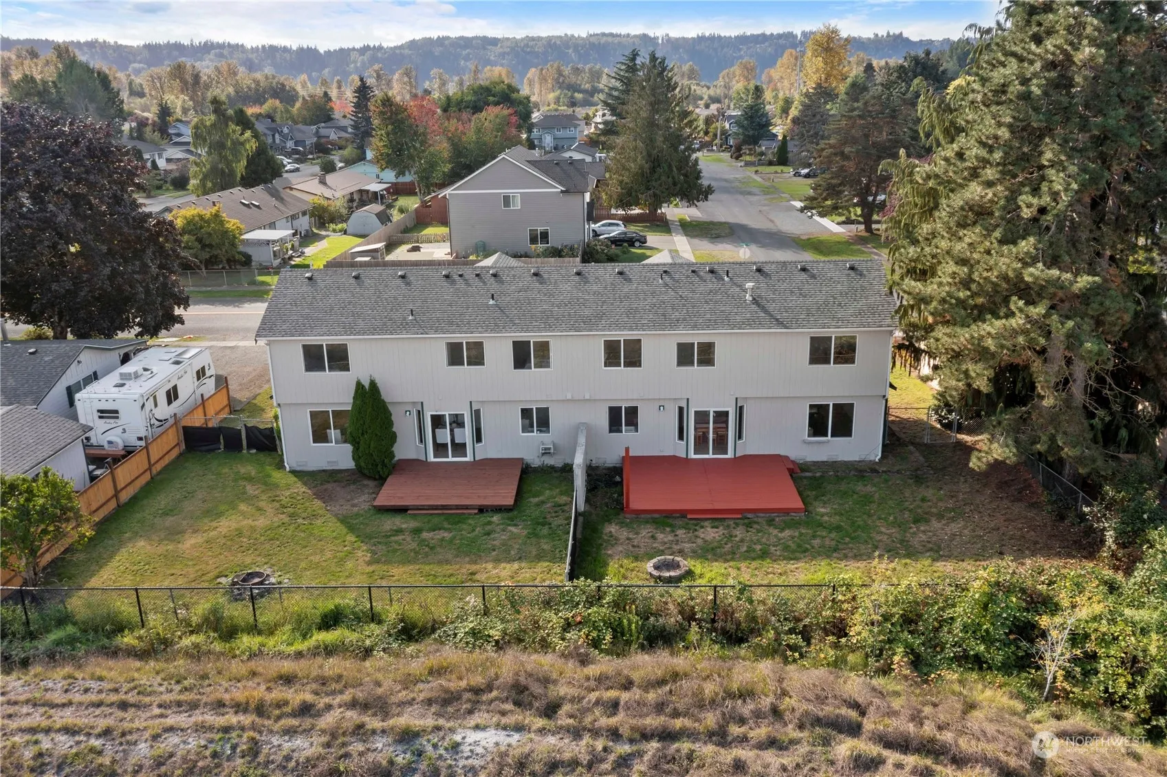 Refreshed duplex featuring breathtaking views of Mt. Rainier & open space. Each unit boasts 3 spacious bedrooms + 2.5 baths, with brand new appliances, carpet & stylish vinyl plank flooring. Fresh paint, trim & doors. Unit 2 w/new kitchen cabinets&quartz counters, water heater. Open-concept living, perfect for entertaining, features cozy gas fireplaces. Kitchens equipped with gas ranges & convenient eating bars. Enjoy dining room w/ a view, overlooking fenced backyards complete with deck&mt views. Units offer large bedrooms including primary suites with walk-in closets & attached baths (one w/ fireplace). Newer roof. Fantastic investment opportunity—live in one unit while renting out the other, or maximize your income by renting both sides.