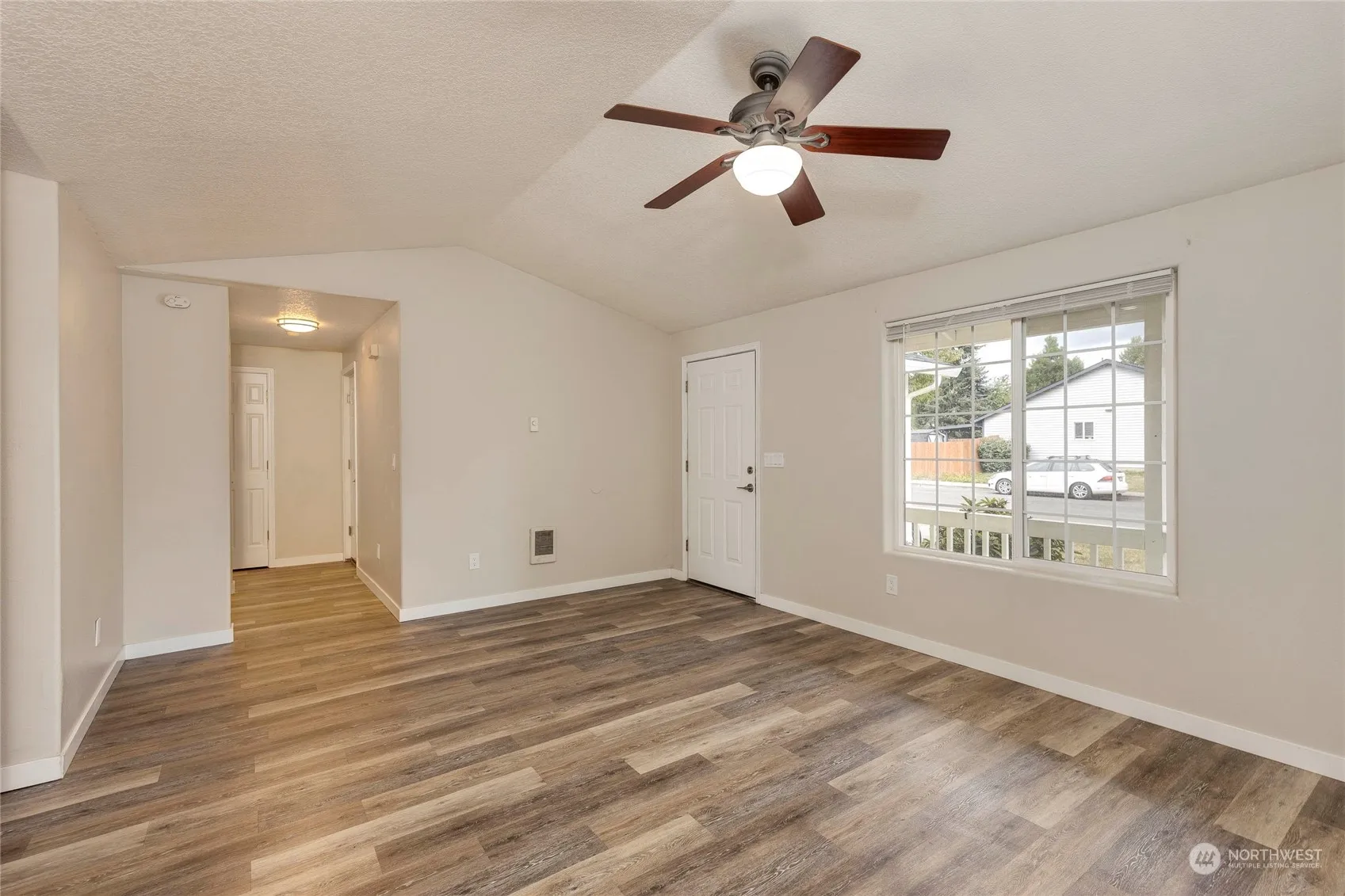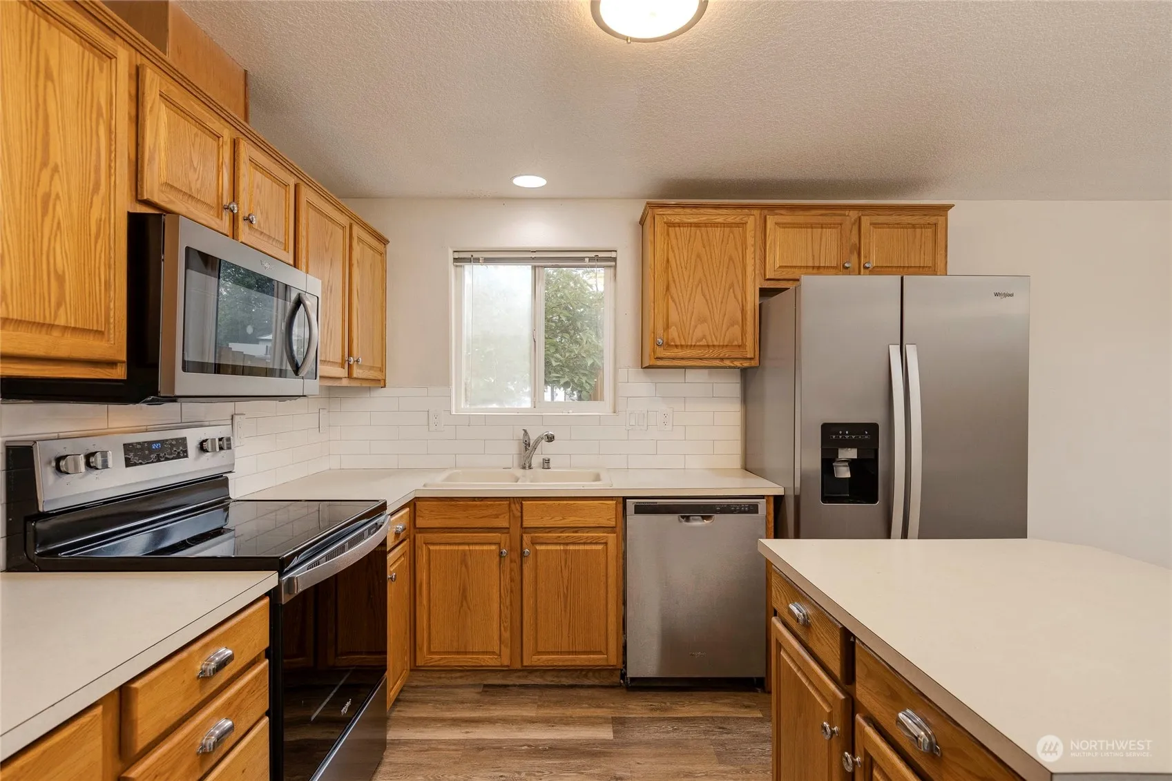 Welcome to this charming 3-bedroom, 2-bath ranch home on a desirable corner lot! This light-filled property features vaulted ceilings in the living room, newer LVP flooring, and fresh interior paint throughout. Recent updates include a Class A, 30-year fire-rated comp roof, new interior doors, light fixtures, ceiling fans, and repiped waterlines. The kitchen has newer SS appliances and a movable island, perfect for extra living or dining space. With no rear neighbors, the backyard offers a peaceful retreat. Located near shopping, restaurants, and schools, this home blends comfort and convenience. Tour today—welcome home!