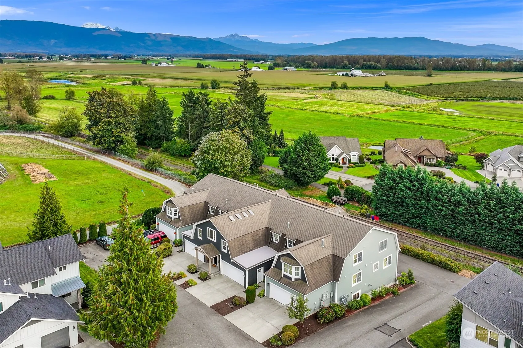 This beautifully updated 3 bed, 2.5 bath, 1,889 sqft condo in the heart of Lynden offers breathtaking southern views of Mt. Baker and the River Valley. The open layout includes a remodeled kitchen with modern appliances, vaulted ceilings, and large windows that bring in abundant natural light. The main-floor primary suite allows for single level living and features a jetted tub, walk-in shower, and walk-in closet. Upstairs, are two large bedrooms, a full bath, and a versatile second living room. Enjoy a private south-facing balcony, a two-car garage, and a peaceful setting at the end of a quiet street, just minutes from local Lynden amenities and schools. This condo feels like a home, but w/o the maintenance. Come see it today!