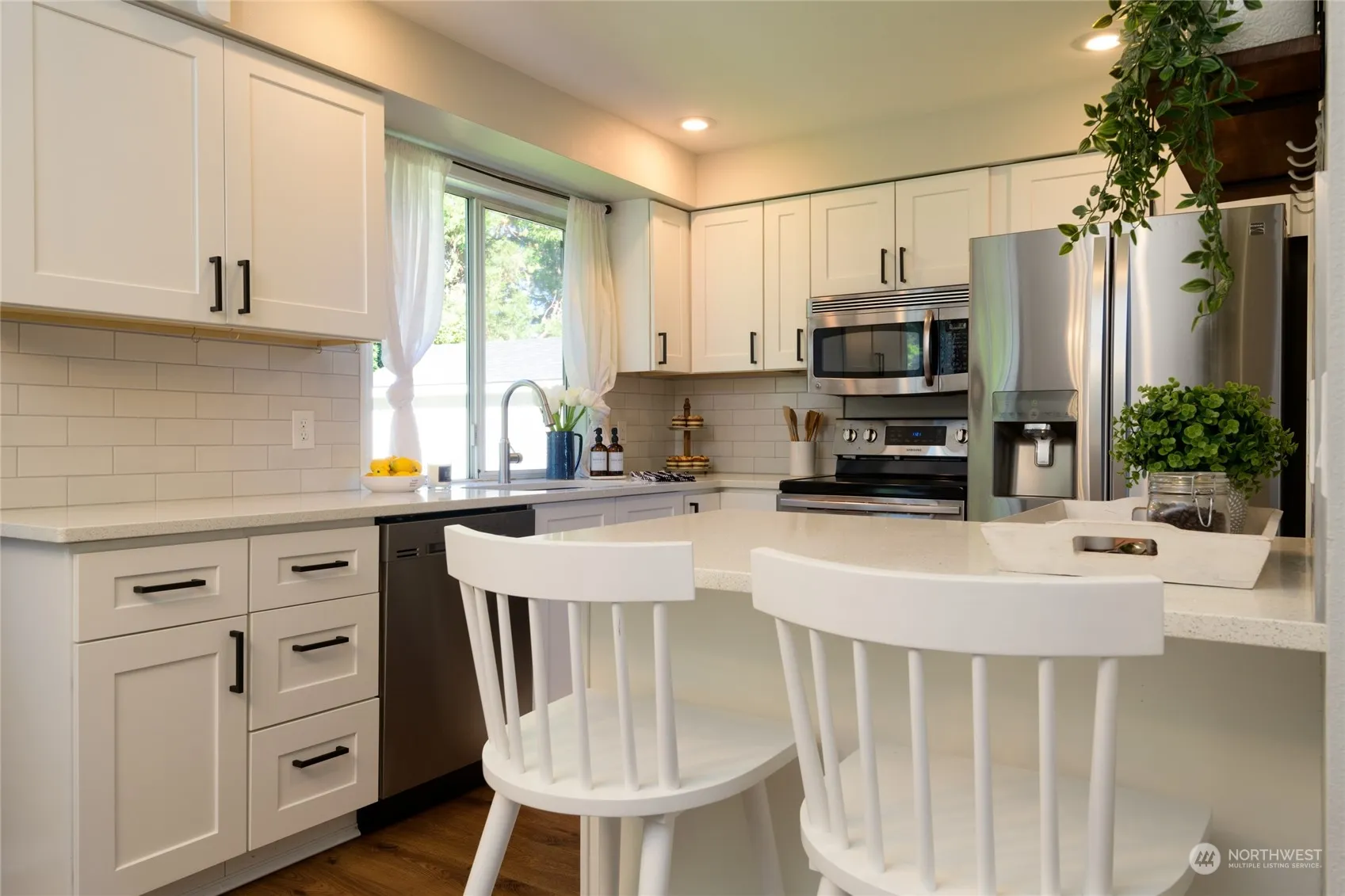 Welcome to this charming home in desirable Pinnacle Estates! This spacious, light-filled home features 3 bedrooms, 2.25 baths & a bonus finished room off of the 2nd bedroom, perfect for playroom or craft space. The kitchen boasts elegant quartz countertops, tile backsplash & bar stool seating. The cozy living room showcases a stunning herringbone tile fireplace w/shiplap mantel & vaulted ceilings. New carpet throughout! Enjoy a second living space with a family room opening to the large fenced backyard. Newer roof, RV parking & 12’x20’ storage shed. Corner lot w/no HOA. Just 5-minutes to Pinnacle Peak Park & charming downtown Enumclaw. You’re also close to Crystal Mountain, Mt. Rainier, Mud Mountain Dam Park & scenic hiking trails.