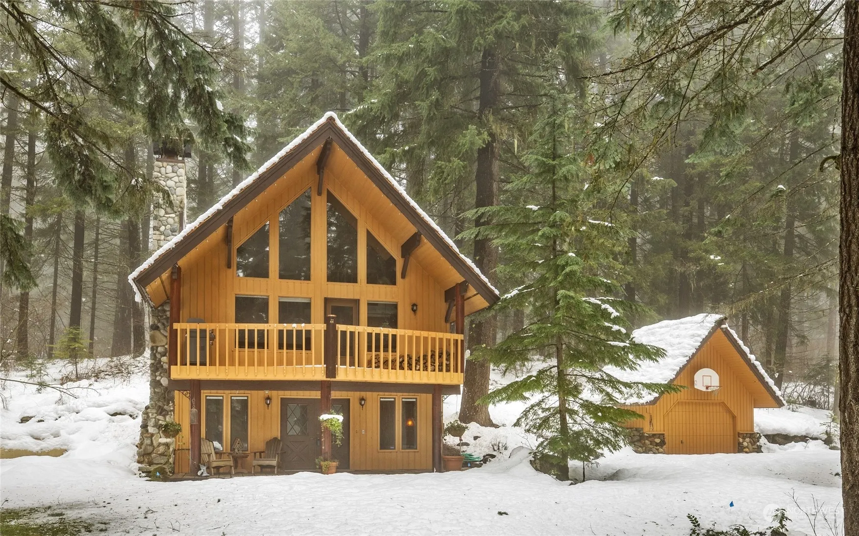Beautiful Northwest Chalet on a nicely wooded .98 ac lot with an additional buildable .91 ac lot with garage included. Lodge-style great room w/soaring vaulted ceilings, exposed beams, stone fp., custom millwork, log accents, & ample windows framing evergreen views, all opening onto a spacious deck. Primary bedroom on the main with sleeping loft above, rec room & bedroom downstairs. Immaculate & move-in ready, furnished for your convenience. Detached garage plus a large heated shop with woodstove, carport, paved year round access & RV parking. Nicely landscaped with outdoor seating, in a park-like setting, ideal for entertaining.Enjoy Sunshine Estates community access to Lake Cle Elum, just across the street. 3rd .95 ac lot also available.