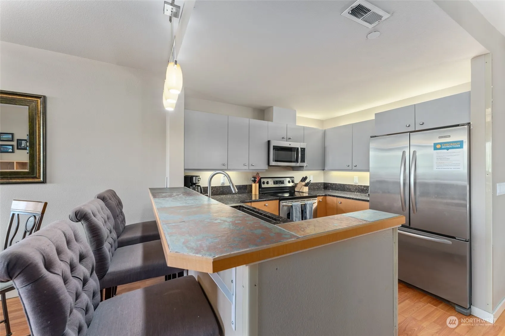 GROUND LEVEL condo unit in Chelan Resort Suites. This unit has had several upgrades since new, including granite counters, new laminate flooring, and stainless appliances. This turnkey unit comes fully furnished with all necessary small appliances, furniture, bedding and fixtures and propane fireplace. The ground level puts you close to the indoor pool/spa and parking options. The ground floor units have an oversized outdoor patio with pleasant territorial view. The location is close to the Lakeside Park which offers Lake access with sandy beach, Slidewaters, boat service up-lake, boat and jet ski rentals, wineries and on active bus route. HOA amenities are, indoor pool/spa, underground secure parking, elevator, BBQ area, WI/FI, TV & WSG.