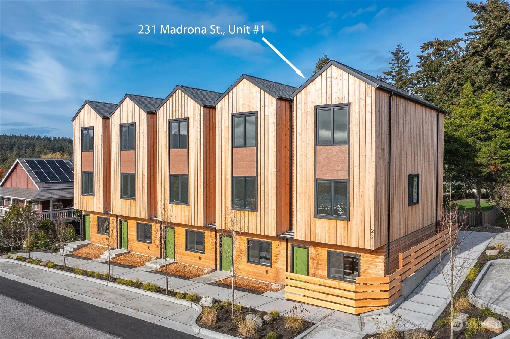 Eastsound Village Townhouse with Vacation Rental Permit! Newly constructed 3 bed/3.5 bath, located near schools, library, beaches, and all local amenities. This five-unit complex offers 2 private entrances for each home. Positioned on the east end, this unit overlooks the village and water views of East Sound. Modern design features include wood siding, quartz and butcher block counters, stainless appliances, and crisp, white walls. The main floor can function as a locked off studio with a 3/4 bath. The second floor has an open-concept living/dining/kitchen area with a 1/2 bath. The upper level includes 2 bedrooms, each with ensuite 3/4 baths. One assigned parking space plus ample street parking. Other units sold separately.