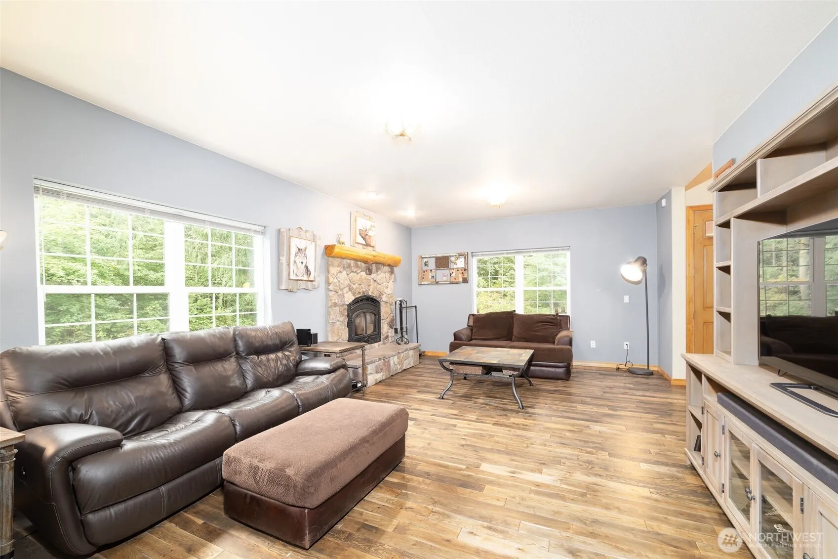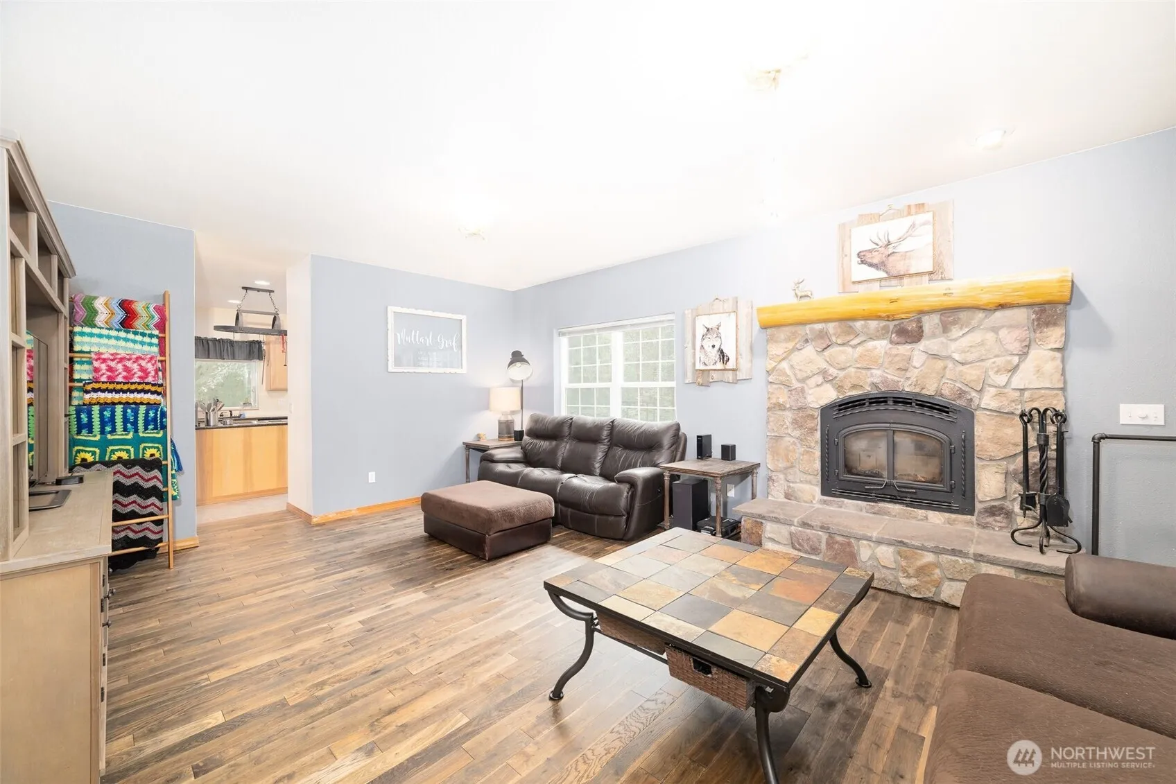 Beautiful setting in the Lake Walker area of Enumclaw. Peaceful and quiet best describes the 5 acres with 3000 sf home, den, bonus room, 740sf attached garage and 40X36 detached garage/shop. The heart of the home is the massive kitchen with 2 garden windows, walk-in pantry, new double oven, granite counter tops and elegant hickory cabinets. Huge dining room that is perfect for entertaining and large gatherings. Hardwood floors, new carpets, AC and a Quadrafire fireplace that heats the entire home. The primary suite offers walk-in closet, jacuzzi tub and expansive shower. The 1440 sf detached garage will amaze with 12′ doors, water and power. Enjoy the outdoor living with a covered porch and full lenght covered back patio.