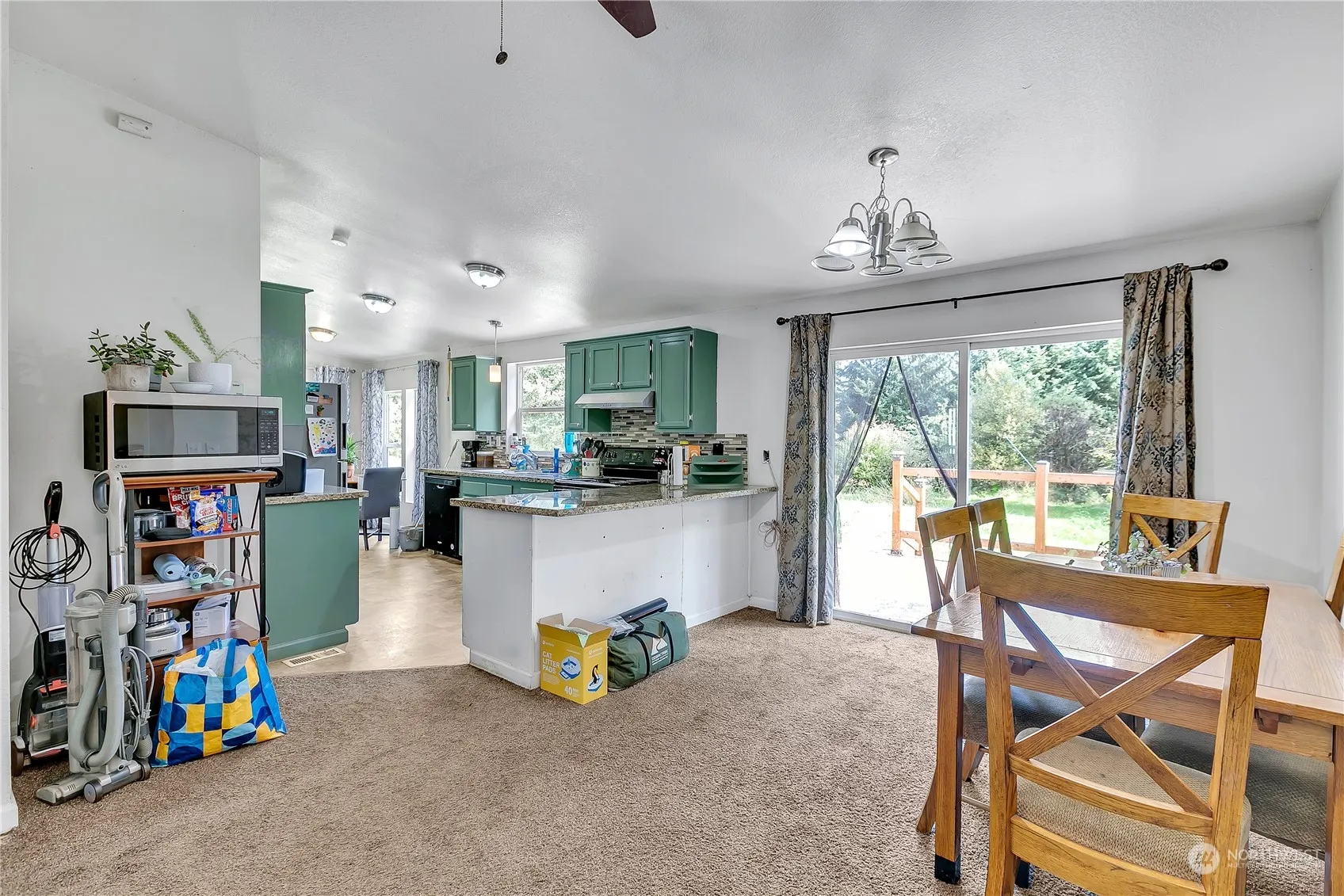 Hurry on this AFFORDABLE OPPORTUNITY to OWN this 3 bedroom, 2 bath lovely home on ONE flat BEAUTIFUL 1.86 ACRE partially fenced lot with SHOP!! The inside is very open with high vaults, beautiful kitchen with stainless steel appliances and nook area + large dining room area. The Kitchen, dining and family room are all open and perfect for Entertaining! The property has many fruit trees, 8 Apple, Cherry, multiple small plum trees and has an established garden area. The SHOP has 2 doors and HIGH ceilings. Perfect for boats or numerous cars or?? Nice convenient area with Country feel yet close to amenities.