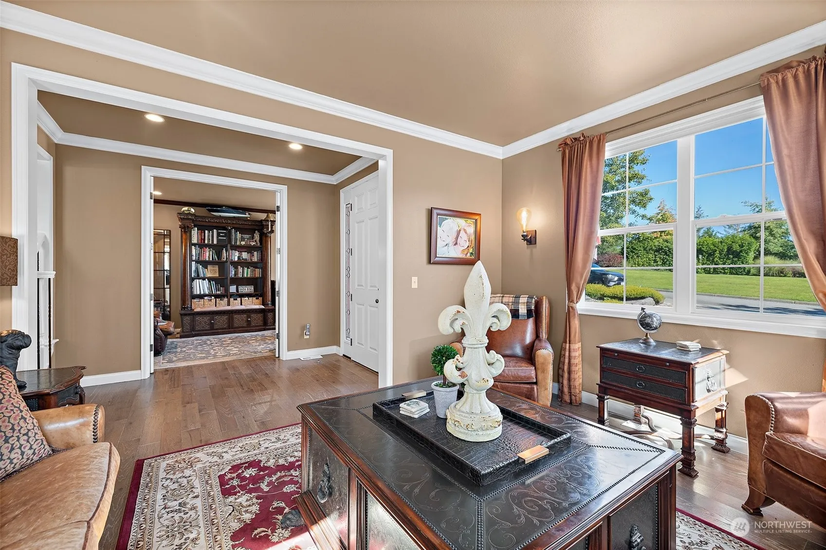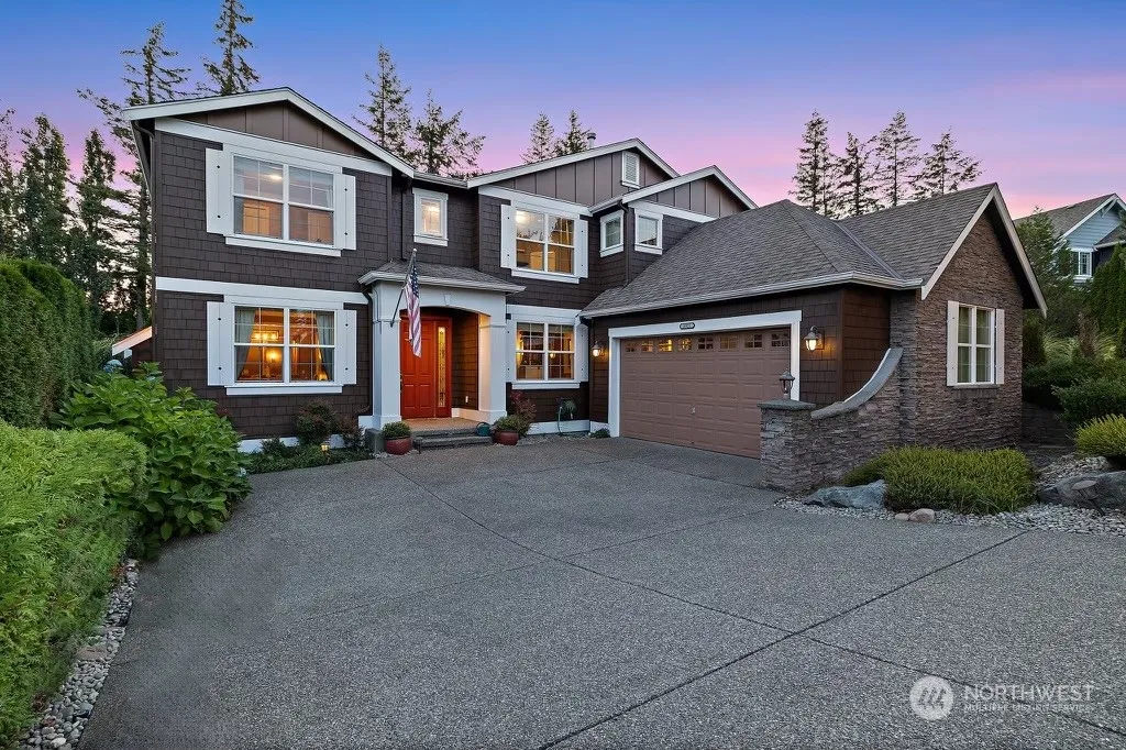 Enjoy the best in suburban living w/ gorgeous mountain views in the heart of Snoqualmie Ridge! Sited on a quiet street across from a charming neighborhood park & steps from The Club at Snoqualmie Ridge this remarkable property offers elegance, luxury & a seamless flow for unforgettable gatherings. Sun-drenched formal living spaces & soaring ceilings greet you. Gleaming white oak hardwoods run throughout. Boasting a game room, a bar & a fabulous theater room this home is an entertainer’s dream. 4 spacious beds, incl massive primary + gym w/ murphy bed, perfect for guests! Backyard is the real showstopper. Offering unparalleled privacy w/ dreamy water feature, huge deck, multiple seating areas & builtin firepit the yard is truly exceptional.