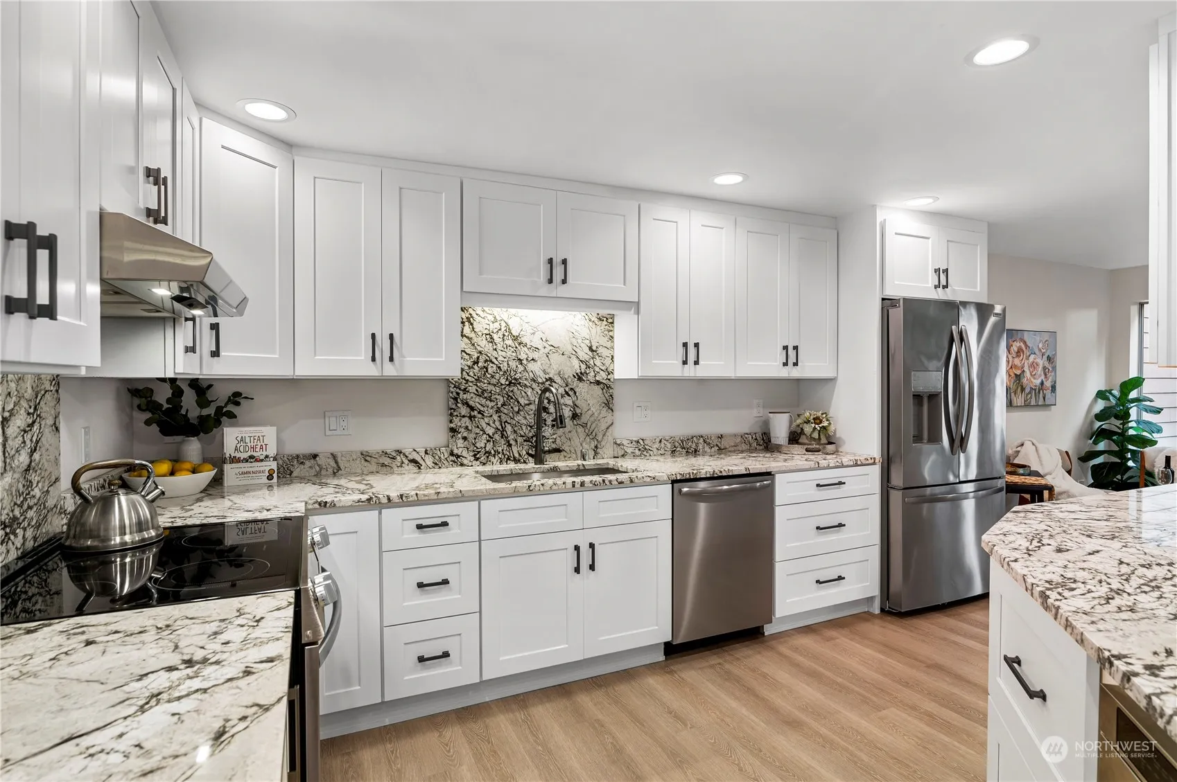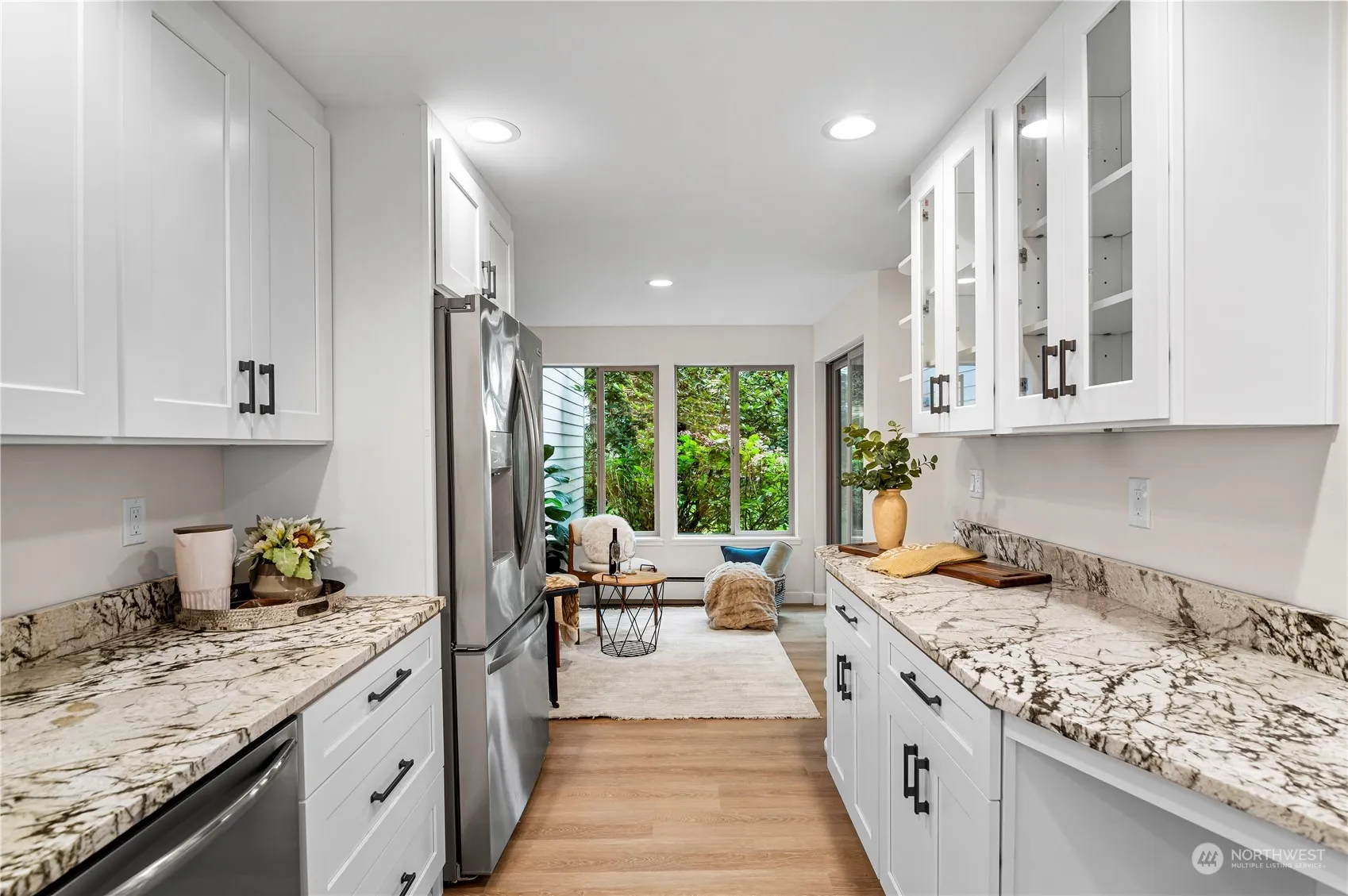 Peaceful retreat w/ high end remodel & easy access to Seattle. EVERYTHING is brand new, from floors to ceilings this 100% permitted remodel is perfection! Imagine enjoying your private view cozied up to the fireplace. This location is ideal, everything is close: new Light Rail Transit Center .6 mi, Golf .6 mi, Lake Ballinger, park, trails, across the street. Plus work out room & pool are all part of your community. You never need to be far from home with every amenity you could ever want or need moments from your front door. The list of special features is so long it can’t be listed here. Call for the list and your private tour of this rare & unique opportunity. You have to experience it to fully grasp how special it is.