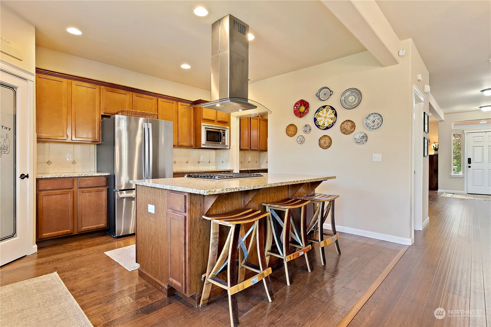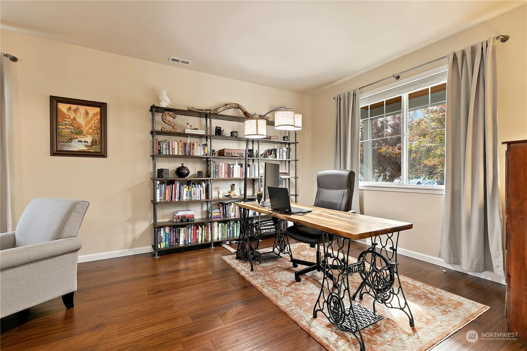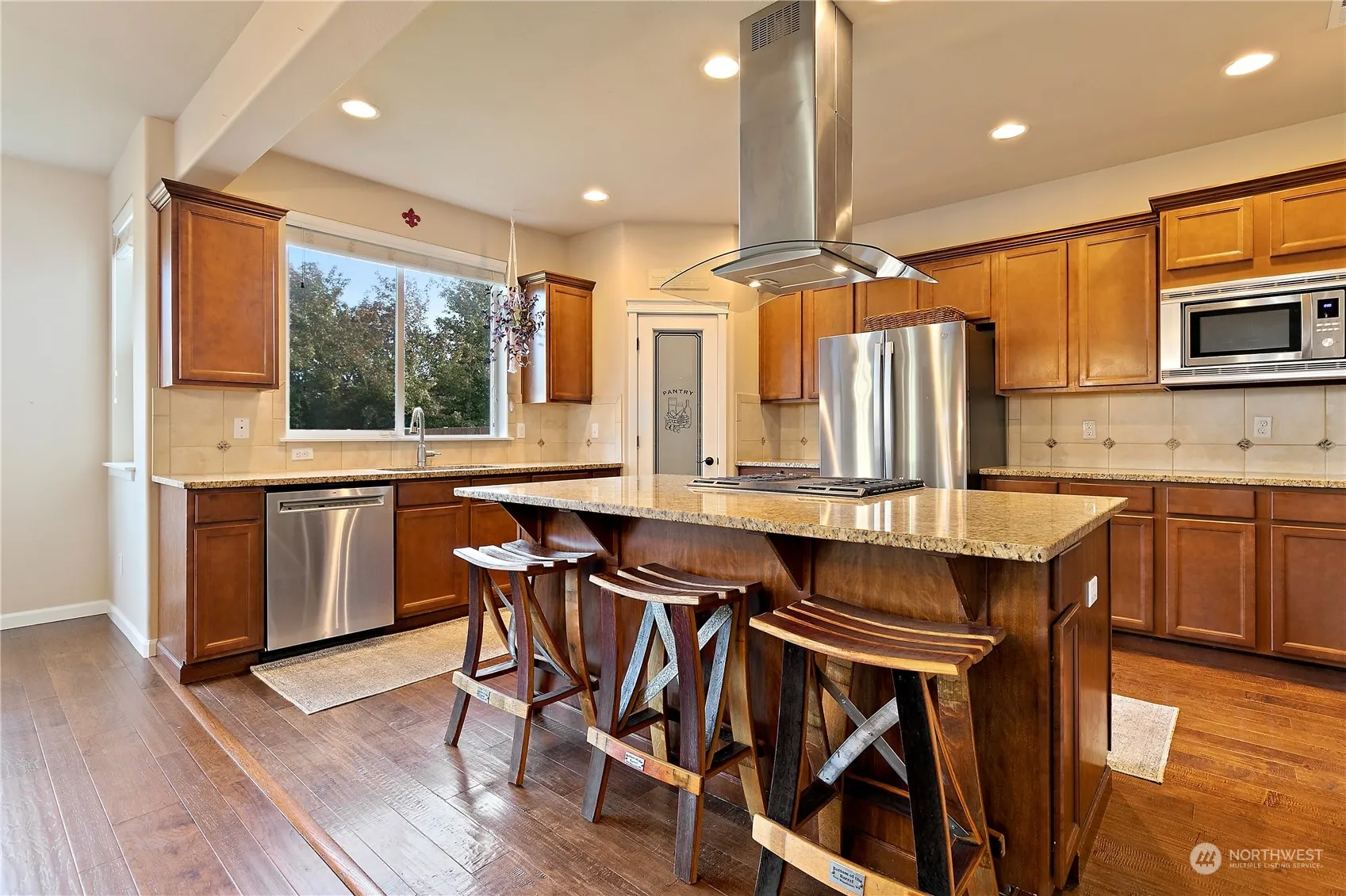 Don’t miss this beautifully maintained 5bdr/2.5 bath Yelm home. This stunning home welcomes you with a covered front porch, engineered hardwood floors, an eat-in kitchen with granite countertops and a walk-in pantry, a butler’s pantry, a living room w/ a gas fireplace, formal dining room, office, and a half bath. The upper level features a loft area, HUGE primary bedroom with gas fireplace, enormous walk-in closet and a 5 piece bath, 4 additional bedrooms, one with a built in murphy bed, a full bath with a new tub and surround, and a large laundry room. New A/C, exterior paint and trim. The spacious back yard is fully fenced with a patio for entertaining, firepit area, raised garden beds, and a storage shed. 2 car garage.