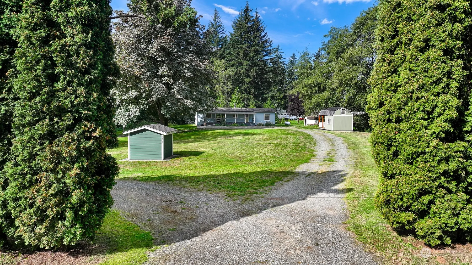 Nestled on 2.28 serene acres in Custer, WA, this 1,900+ SF 3 bed 2 full bath home offers the perfect blend of privacy, convenience, and charm, with a guest cabin, large shop, and park-like grounds for just $425K! This property features a sunny lot all the while offering privacy from the road with a tall hedge of arborvitae. It even has a circle driveway! There is a separate entrance from Delta Line to the wooded park with a fire pit on the south side of the property. The guest house cabin is included in the price and is an extra 192 SF. The house offers great visibility of the whole property. The large shop allows for storage of cars, tractors, equipment, tools, etc. Come check it out today!