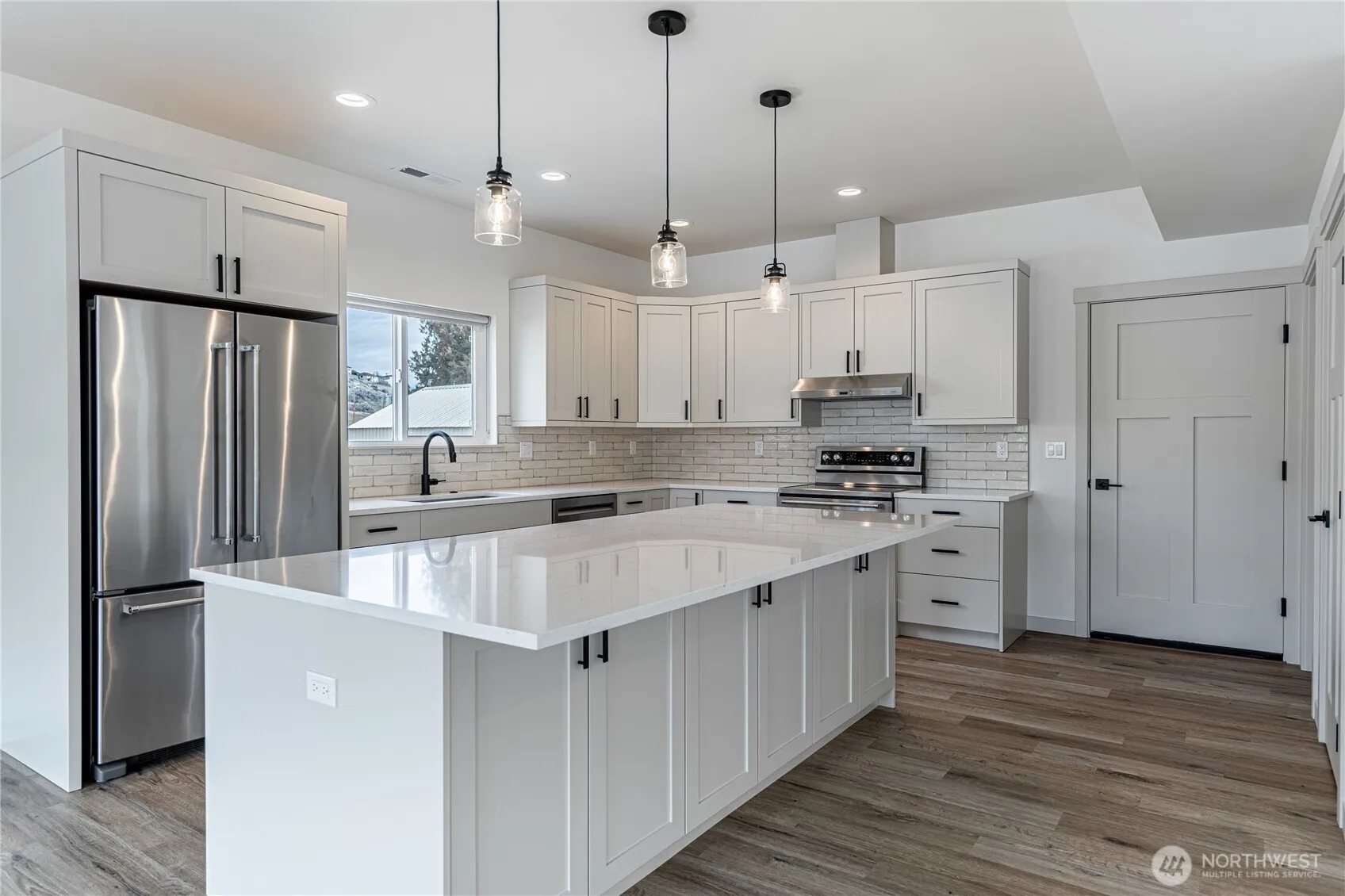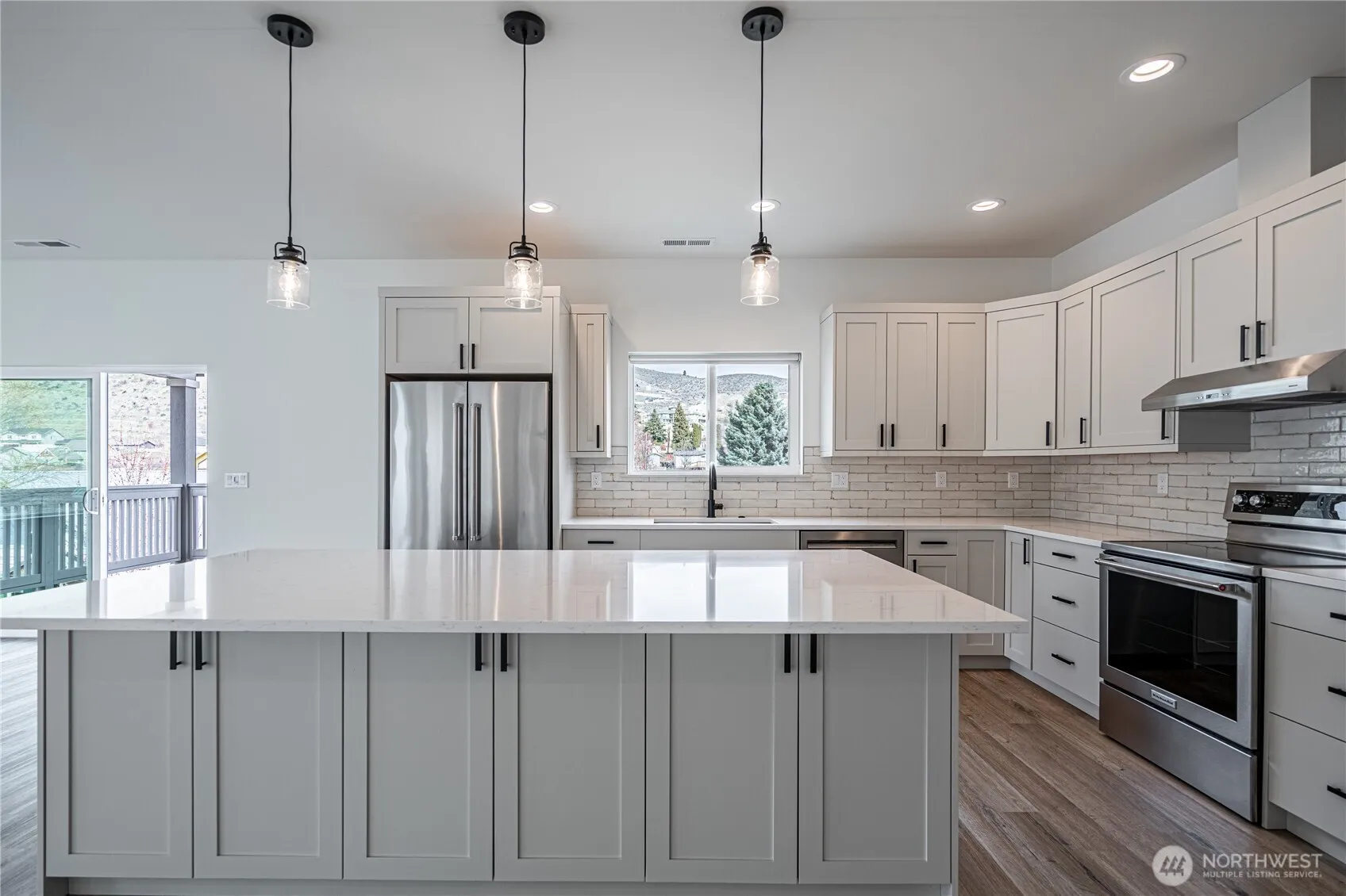 Welcome to your new 3-bedroom, 2.5-bath home, thoughtfully designed with everyday comfort in mind. Nestled with scenic river valley views, this new construction home features custom cabinets, sleek stainless-steel appliances, and durable quartz counters in the kitchen. Modern finishes throughout add a clean, contemporary feel. Step outside to enjoy the covered front porch or unwind on the covered back porch, both perfect for quiet mornings and casual evenings. The landscaped yard, complete with an automatic sprinkler system, keeps outdoor upkeep simple and stress-free. Move-in ready and built for real life, this is a home you’ll love coming back to.