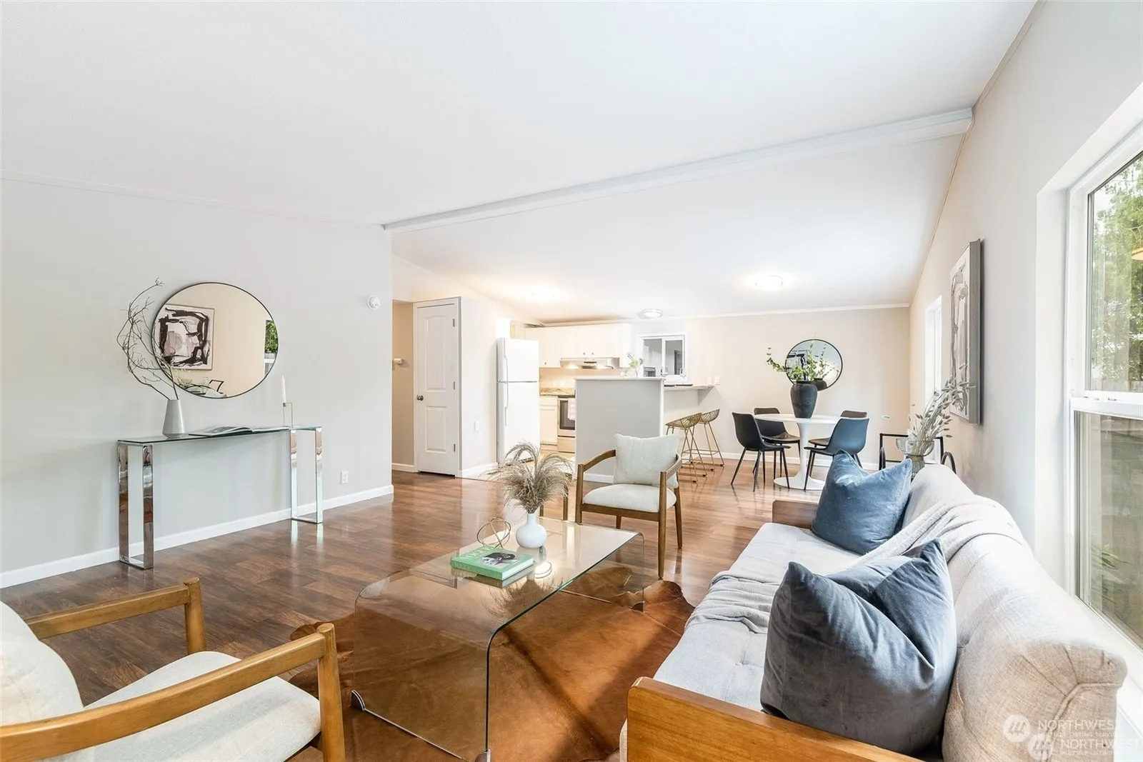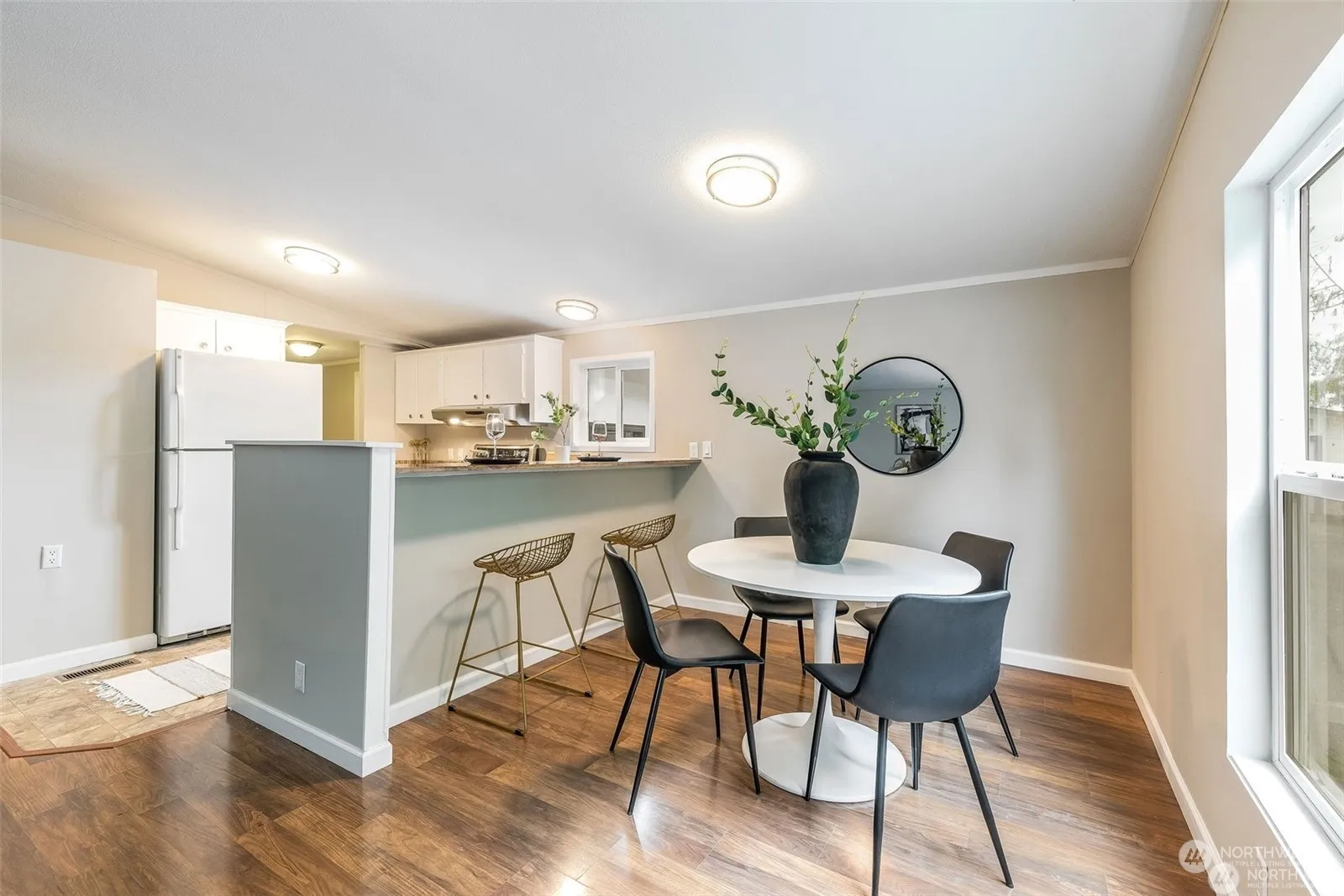 Beautifully maintained 1200+ sq ft manufactured home! This 3BR, 2BA features modern kitchen w/ white cabinets, high quality laminate flooring, trim, and SS appliances. Tasteful finishes all through out. Detached 970 sqft two car garage that provides tons of parking space/great for a workshop. Find tranquility in the open living room & enjoy the peaceful and private scenery off private front covered deck. It sits on a quiet street that offers great privacy. Just minutes to Outlet Auburn mall, freeways, restaurants, boutiques, and entertainment. A commuters dream!