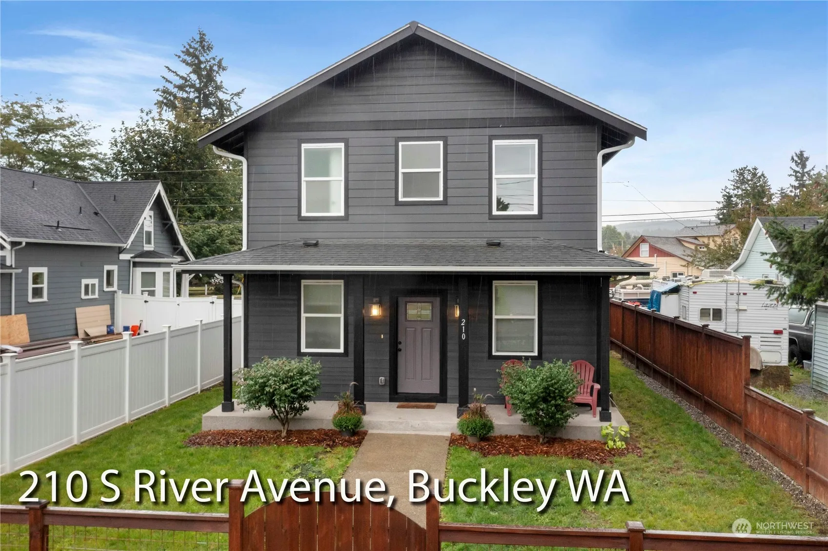 Welcome to this beautiful home nestled in the Heart of Downtown Buckley featuring 1,751sf, 4-bedroom plus an office, 2.5-bathroom, spacious living room with cozy electric fireplace, dining area and A/C. Effortlessly entertain with thoughtful open concept layout. Gorgeous kitchen with custom cabinets, stainless steel appliances, large island and walk-in pantry. The generous primary bedroom has its own private bathroom and walk in closet. NO HOA DUES! Simple, small town living at its finest… Prime location just minutes away from the numerous shops, restaurants, and parks that downtown Buckley has to offer. Make sure to check out the video!