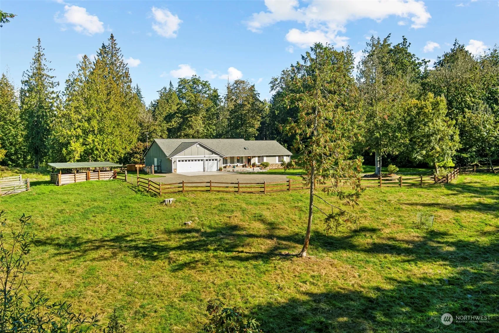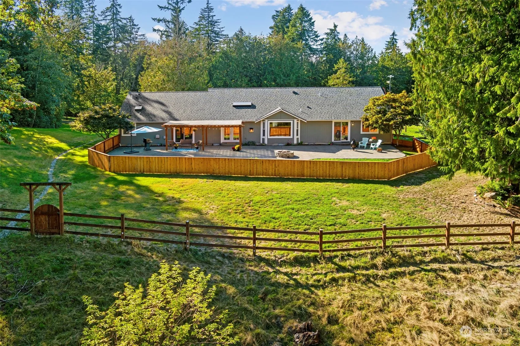 Welcome to elegant country living! This custom-built home, sits on 5 stunning acres of forest and fenced pastures. Soaring vaulted ceilings throughout, skylights, central fireplace, gourmet kitchen, bay window in dining, and expansive living spaces. Two large bedrooms, on opposite ends of the home. Updated luxury en-suite and walk-in closet in larger primary. Amazing outdoor space for entertaining! Double French doors lead out to gorgeous back patio, fenced yard, large stone fire pit, and breathtaking views of the land. Three-car attached garage, with plenty of additional parking. Wonderful neighborhood in the coveted, Eglon area of Kingston. Close to the Edmonds ferry, great restaurants, shopping, and outdoor fun! Come see it today!