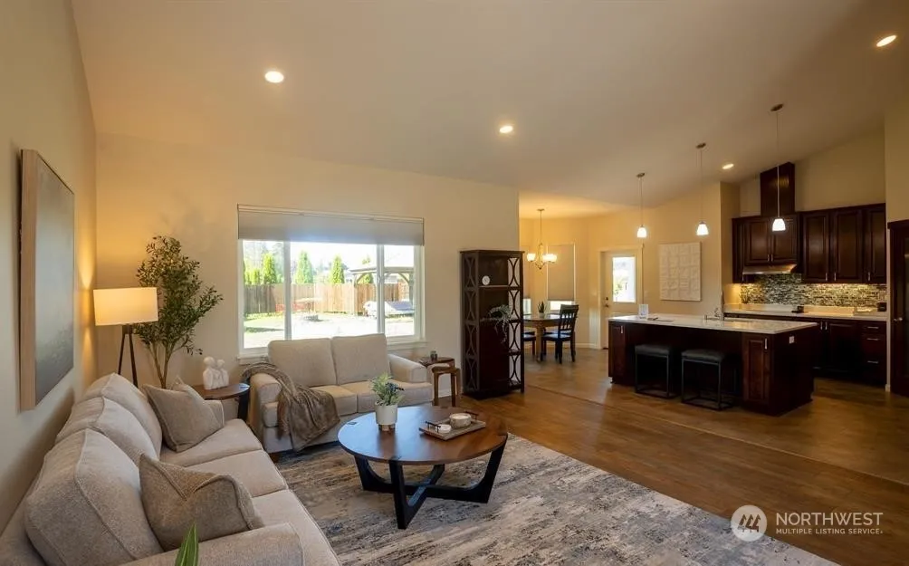 Beautiful move-in-ready 3BR 2B + den/office home on 1.5 easy-care acres with 3 outbuildings (8’x12′, 12’x16′ and 11’x28′) and plenty of room for an ADU or even bigger shop. Sunny and roomy, with vaulted or 9′ ceilings, split floorplan with main BR opposite other bedrooms, luxury kitchen, ADA hallways & doors, triple pane windows, and other fine features. Outdoors, along with 3 out-buildings, you’ll find 2 covered south facing patios, a gazebo, a fire pit, fruit trees and garden, and a fenced dog run. Plus irrigation water to keep everything green.