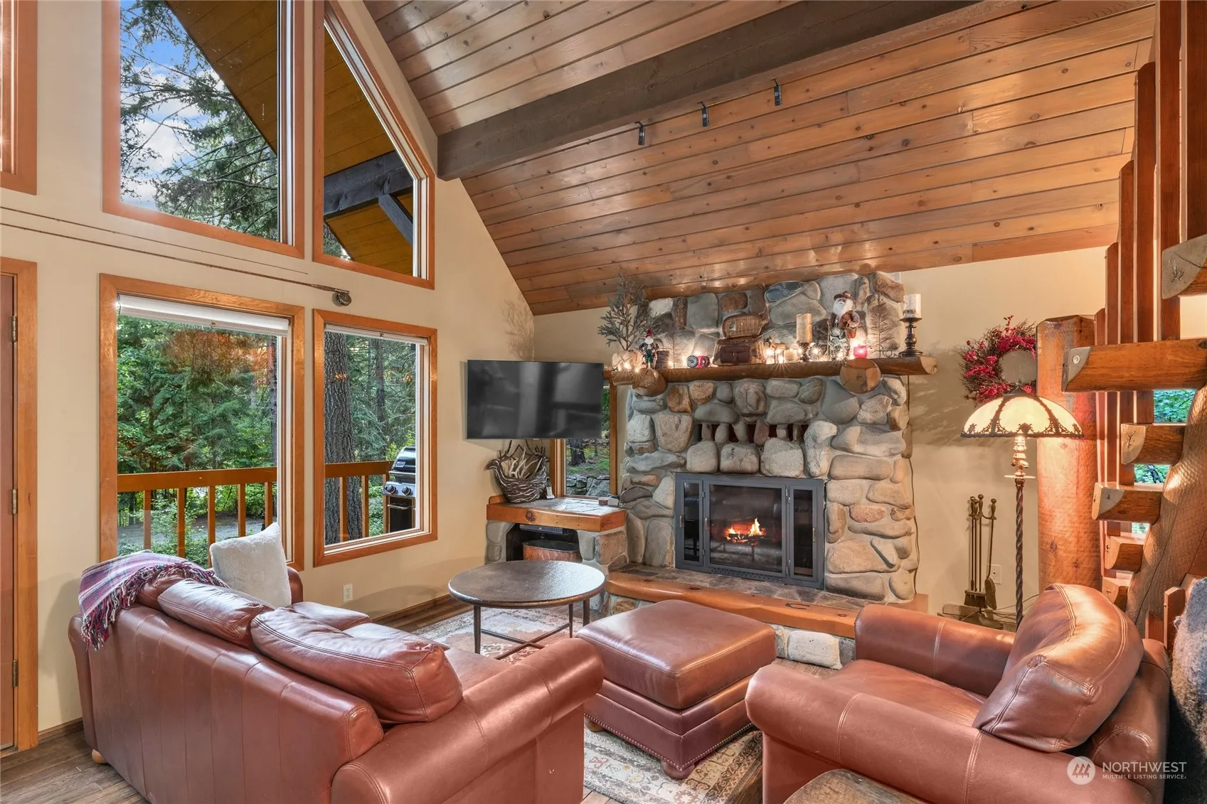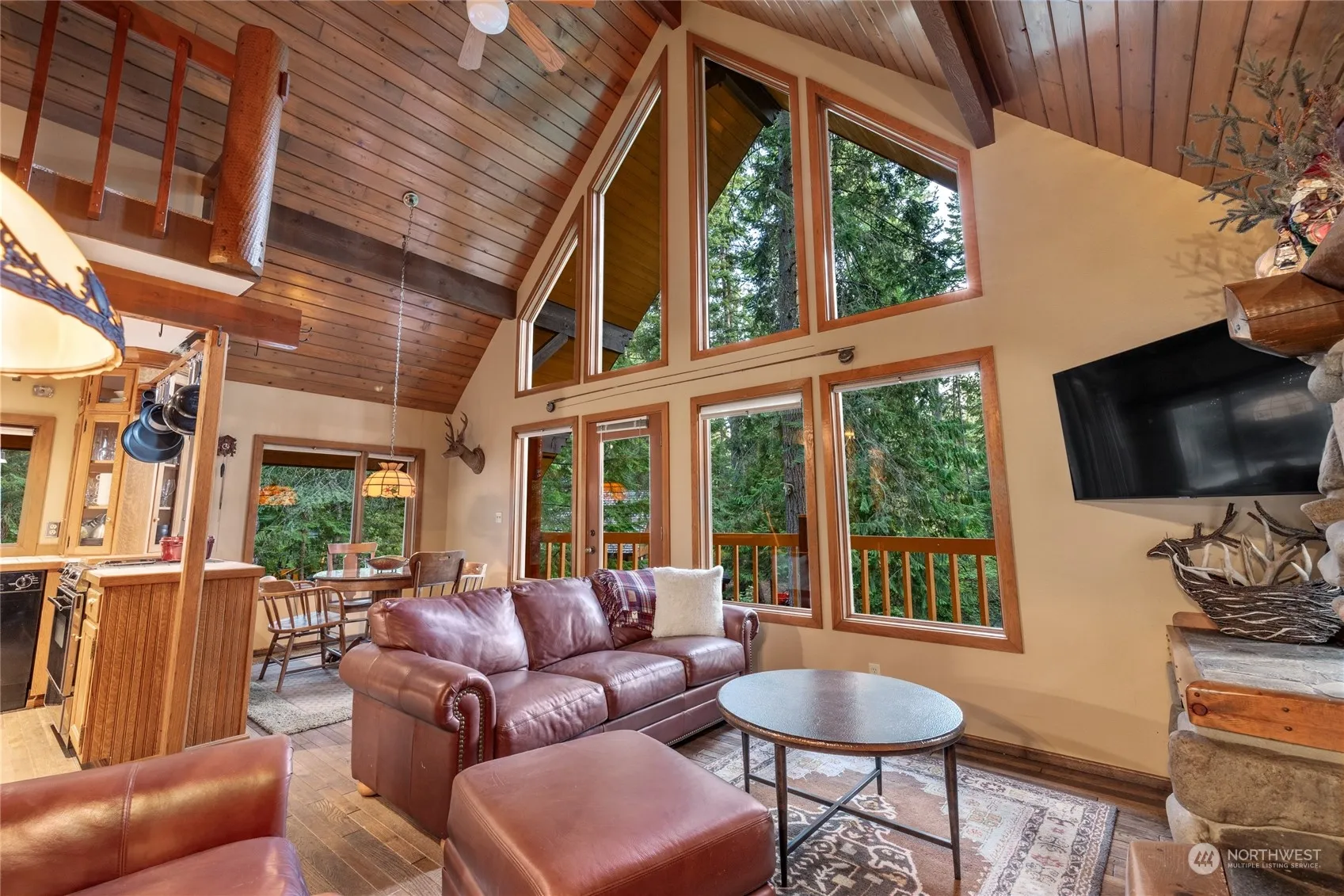 Beautiful Northwest Chalet on a nicely wooded, landscaped shy acre near Lake Cle Elum. Lodge-style great room has soaring vaulted ceilings, with exposed beams, stone fp., custom millwork, log accents, & ample windows to frame evergreen views, all opening onto the spacious deck. Primary bedroom on the main with a sleeping loft above, rec room & bedroom downstairs. Immaculate & move-in ready, furnished for your convenience. Detached garage plus a large heated shop with woodstove, carport, paved year round access & RV parking. Nicely landscaped with outdoor seating, in a park-like setting, ideal for entertaining. Enjoy Sunshine Estates community access to Lake Cle Elum, just across the street. 2 add’tl lots available for purchase separately.
