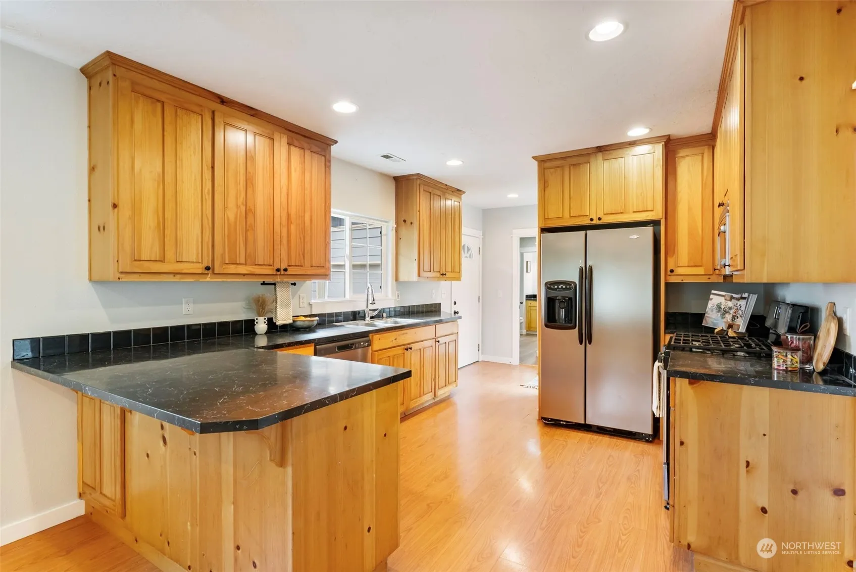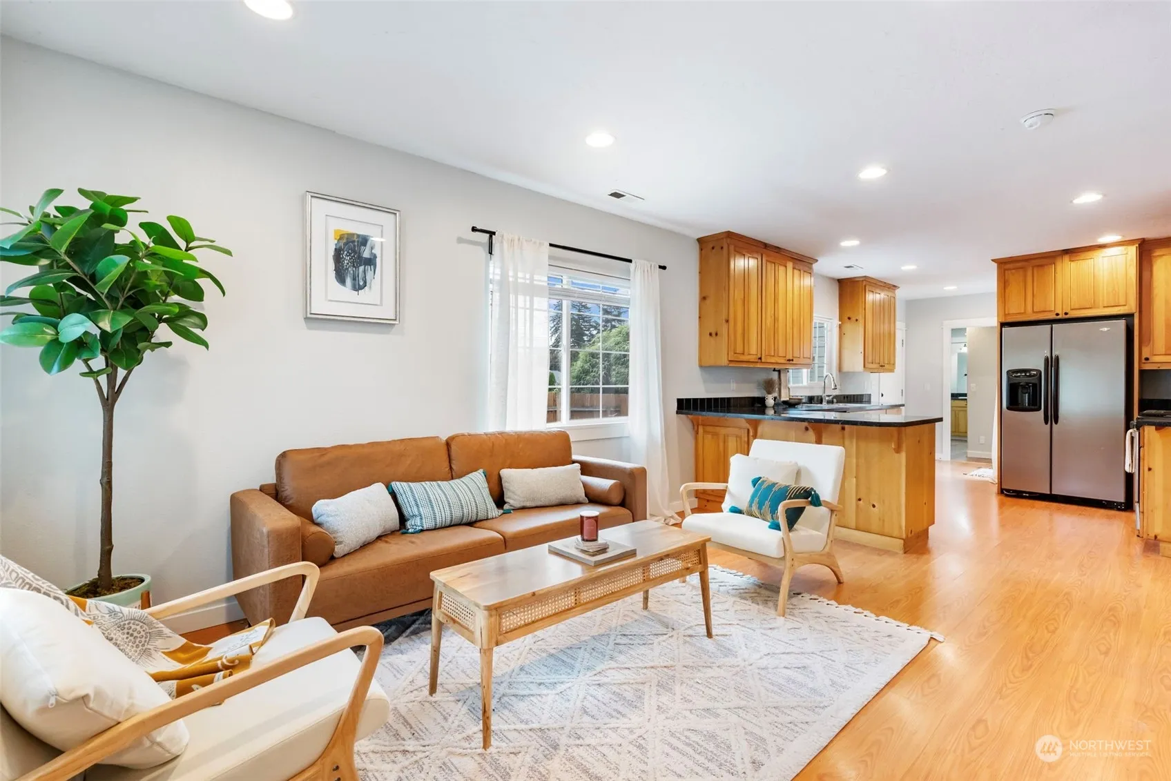 Beautiful natural light on this one-story home near the heart of downtown Camas. A sweet little front porch with main entry leads to the living room and an open, well thought-out floorplan including a large kitchen, uncommon at this square footage. Fresh paint and flooring throughout, including brand new carpet in both spacious bedrooms. A private, sunlit, fully enclosed backyard with raised beds and a deck is a blank slate for gardening and gathering with friends. The attached garage, lengthy driveway and on-street parking easily accommodate all your visitors.