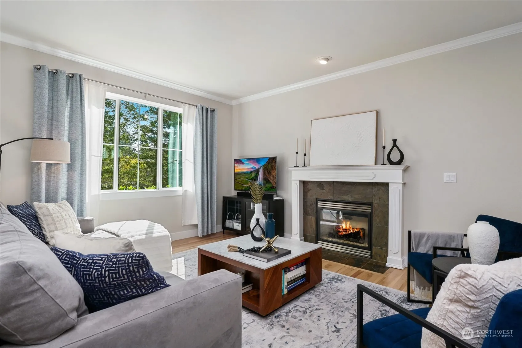 Absolutely gorgeous corner lot home in the coveted neighborhood of Crestview! Desirable light filled great room concept w/soaring ceilings, beautiful refinished hardwoods & gas fireplace. Spacious kitchen features updated appliances, sink & faucet w/access to fully fenced private backyard w/lush landscaping. Upper level has 4 bedrooms including primary en-suite w/5 piece bathroom & walk-in closet. Recent modern upgrades include baseboards, lighting, plumbing fixtures, A/C, water heater, generator, carpet, interior/exterior paint, 30 year roof, crown molding & plantation shutters. 2 car garage w/EV charger, new door & opener. Steps away from community park, close to golf course, amenities, trails. Fantastic schools, convenient access to I90.