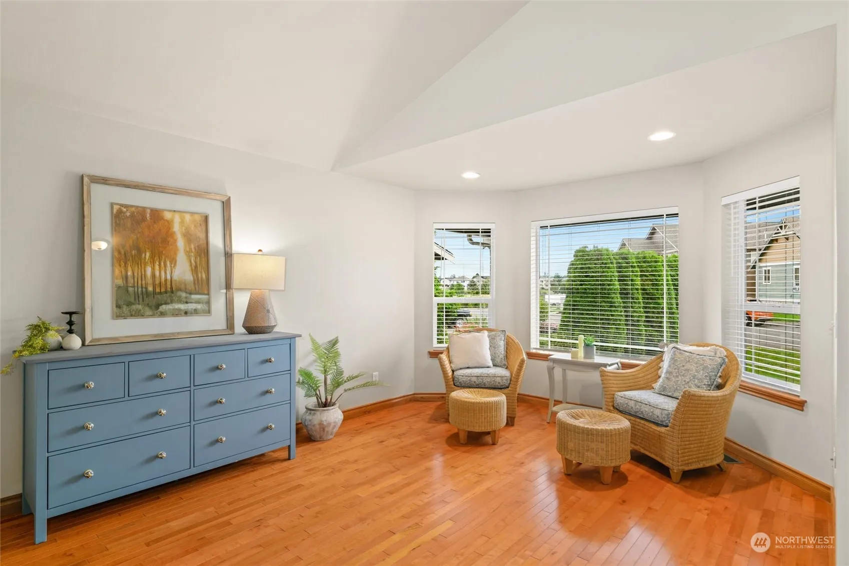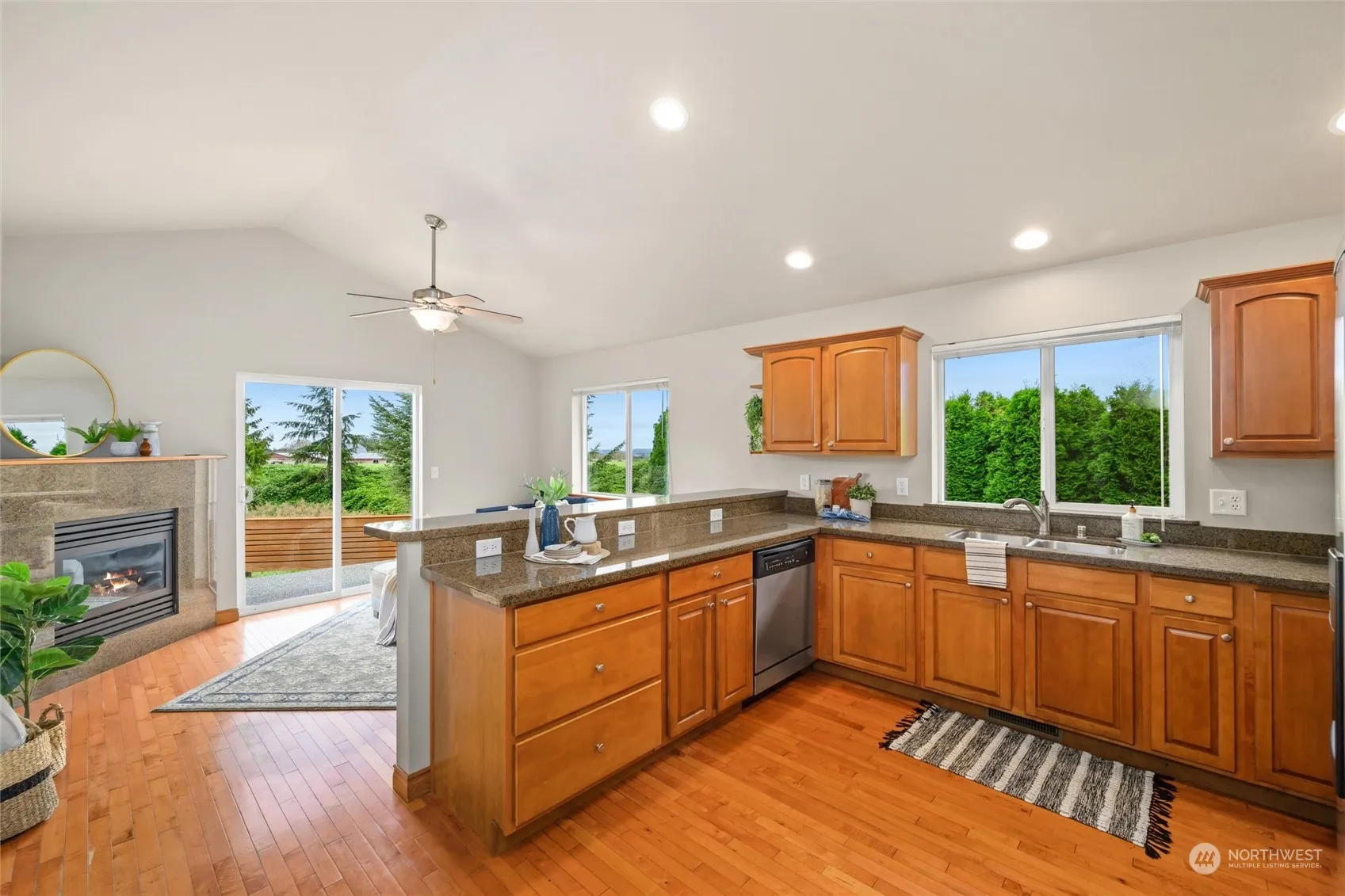 Revel in magnificent views of Mt Baker and the Canadian Rockies from the open floor plan featuring cathedral ceilings, hardwood floors, and a cozy fireplace. Discover this beautifully refreshed 3 bed, 2 bath single-level home boasting 1,612 sq ft of elegant living space.The kitchen shines with granite countertops, stainless appliances, and an eating bar. The primary suite offers a slider to the patio, a spacious walk-in closet, an ensuite with a dual sink vanity, jetted tub, and walk-in shower. Includes a convenient laundry room and expansive 2-car garage. Located in Pacific Highlands with a tennis court, playgrounds, picnic areas, and walking trails. Easy access to freeway with new Thornton Street exit.
