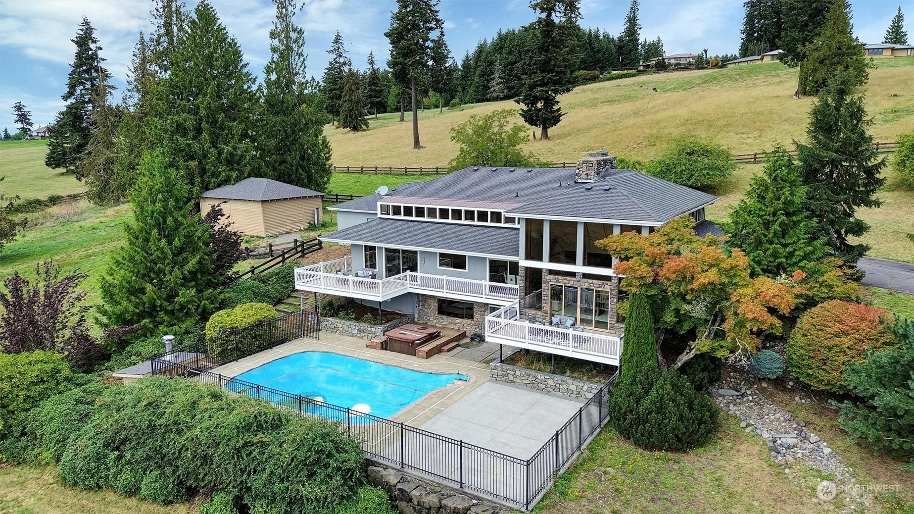 Meticulously, this estate is in Enumclaw’s most admired gated community, with top-of-the-world views of Mt. Rainier, Bass Lake, and Enumclaw. It features an in-ground pool, hot tub, sports court, trout pond, fruit trees, and a barn thoughtfully positioned on the shy 14 acres of Oasis. The brand-new 50-year roof and newly painted exterior complete the home. It features a gourmet kitchen, luxurious master suite, sauna, media room, and way too much to list. It’s a must-see!