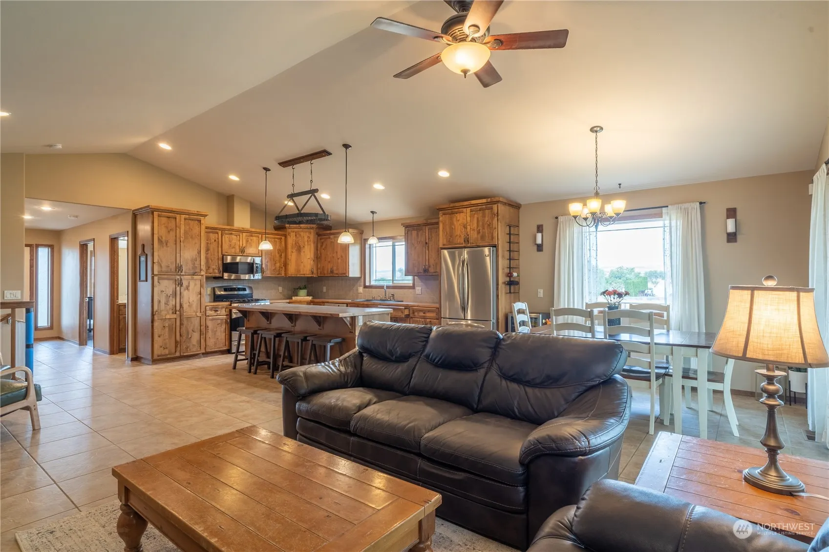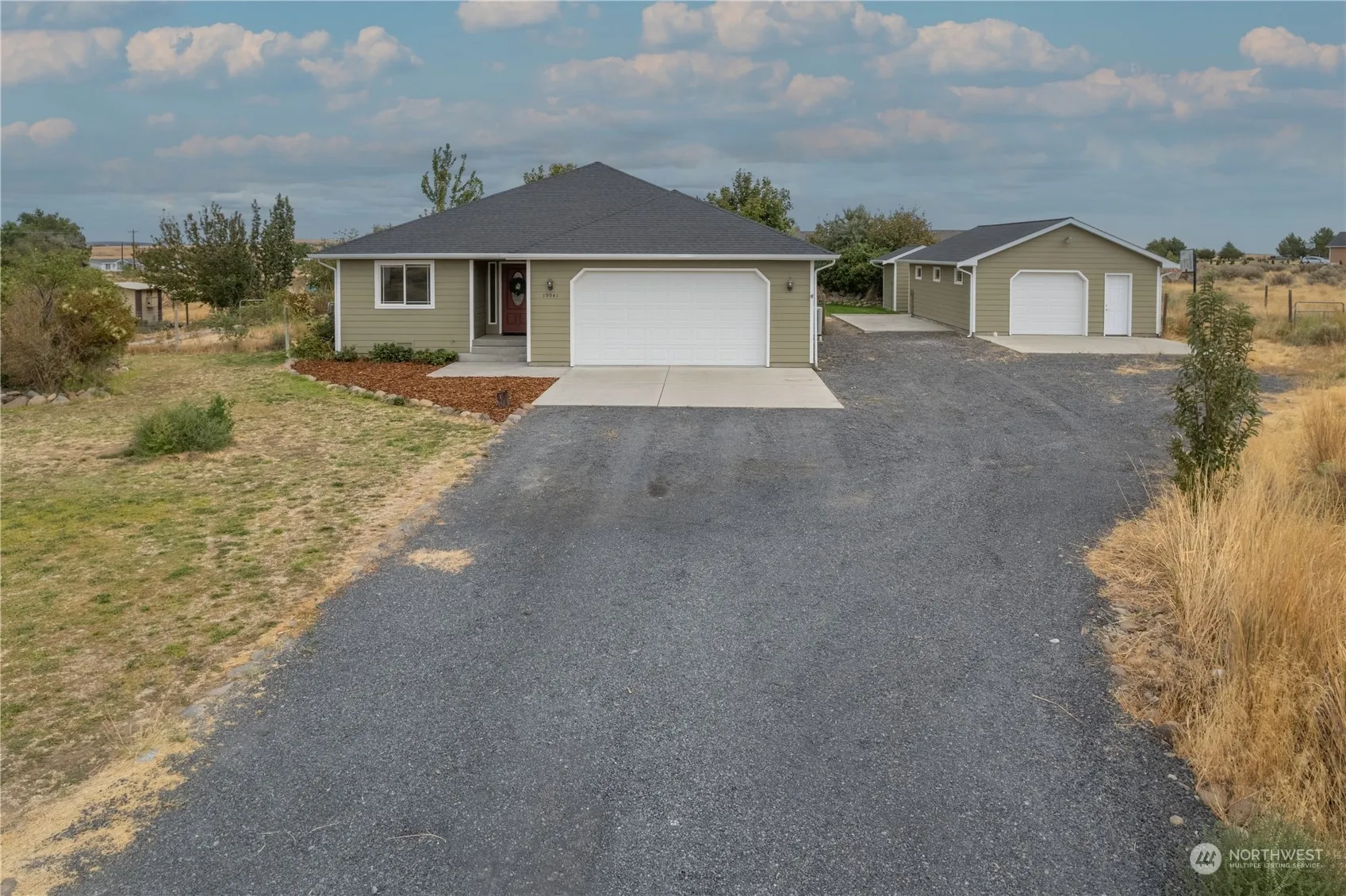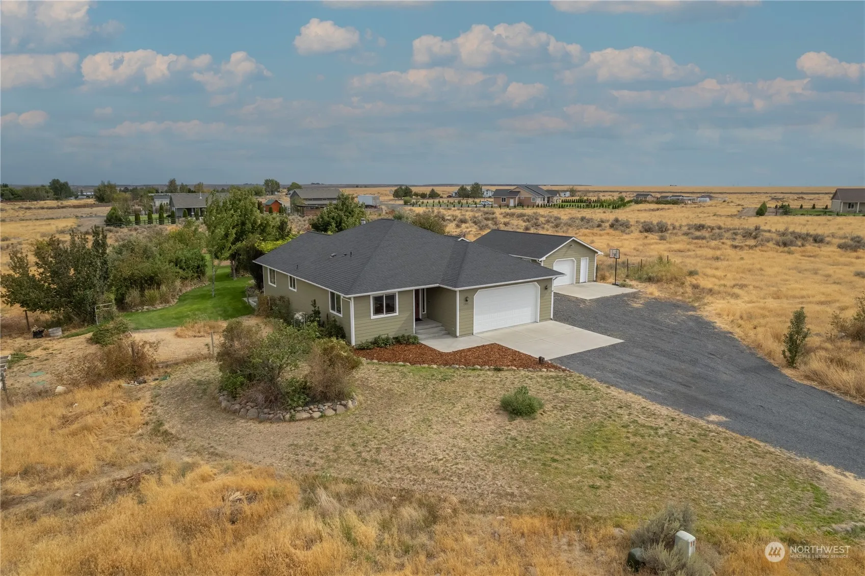 Discover this custom-built home on nearly 5 acres just outside Ephrata, designed for one-level living with extra space downstairs. This 3-bed home includes a den, bonus area, and 2.75 baths, with the en-suite featuring a tiled walk-in shower. The kitchen offers custom cabinets, SS appliances, and an oversized island. The living area boasts vaulted ceilings, a wood-burning fireplace, and custom built-ins. Outside, enjoy a manicured lawn, garden beds, sprinkler system, RV hookup, and a large deck. TrimLights installed for year-round ambiance. Ability to work from home with 1G fiberoptic internet. The finished detached garage offers flexibility for a shop or add’l living space with a half bath, separate water heater, and electrical panel.