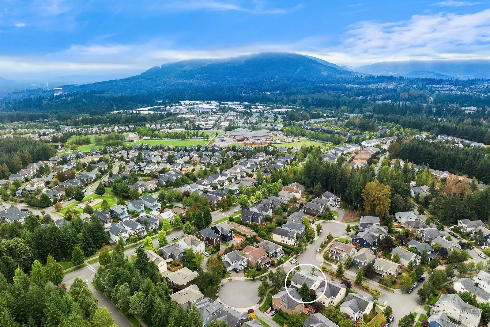 Welcome home to Snoqualmie Ridge! This sought-after 4-bed, 3-bath home is sited on a large corner lot in a quiet double cul-de-sac. Enjoy the open floor plan, featuring a generous dining room & a spacious entry for welcoming guests. Large kitchen & great room anchor entertaining spaces & flow seamlessly w/ the flat backyard & covered patio—perfect for hosting. The open kitchen is complete with breakfast bar seating, ample counter space, natural light, bay window, & breakfast nook. Enjoy privacy, safety, & convenience, with proximity to schools, parks, & neighborhood amenities. With a 2-car garage plus extra parking, this 2,480 sq. ft. home offers everything you’re looking for in a prime location. $10,000 hardwood floor credit available.