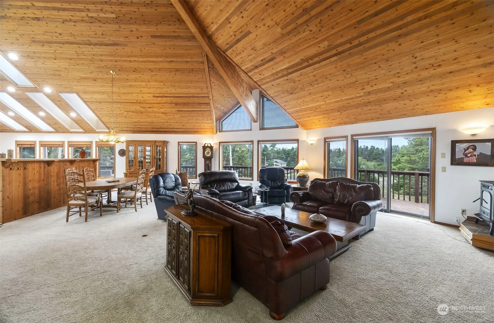 The stunning design, ideal for entertaining and the large high dune parcel set this expansive custom home apart. Lovingly maintained since the owner had is constructed in 1988, from the moment you arrive you will appreciate the natural light and open concept. Large kitchen, ample dining area, voluminous great room and a generous primary suite, all with access to the large west side deck and hot tub. Downstairs the guest level provides privacy and additional functional space. Top it off with the gracious curved stairs leading up to the large “crows nest” bonus room. This inspiring space with its own small deck could be an art studio, home office, ultimate play area or any number of creative uses! Bonus Boat Shed with separate access to boot!