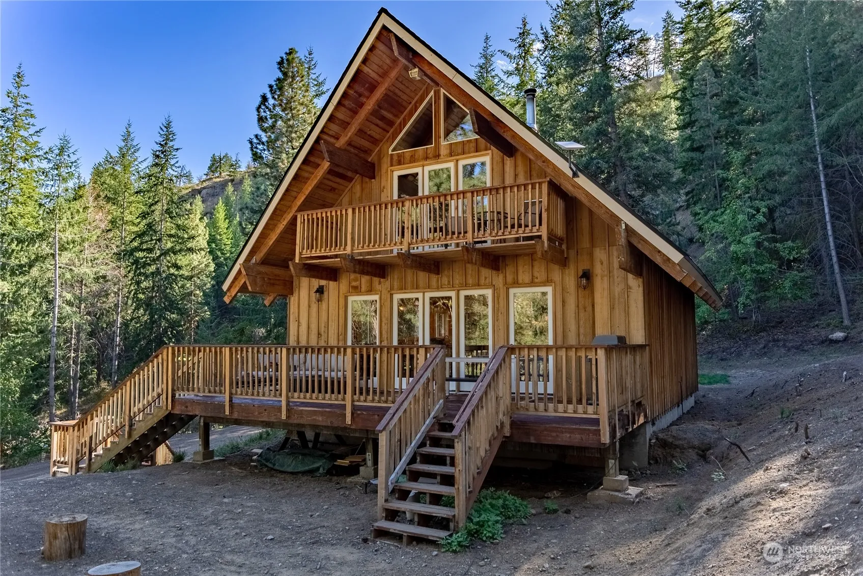 Classic storybook cabin with 3 bedrooms and 2 bathrooms, great trail access and a perfect location for maximum recreation! This cabin was extensively updated including new roof, bathrooms, & kitchen featuring custom cabinets, granite counters, & all new appliances. Invite your friends to come stay with new RV parking with 50AMP service. The home was recently fire wised and professionally terraced to maximize the usable outdoor space and recently seeded with a native seed blend from Methow Natives. The large deck is perfect for relaxing while overlooking the profuse aspen grove below. Delight in a sunny location, peering through the trees from this private cabin close to Winthrop with some of the best trail access in the Methow.