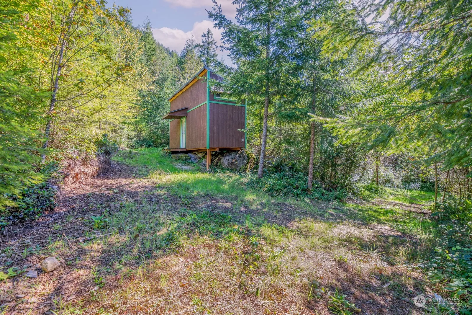 Explore this hidden gem near Dagger Lake. The property is partially cleared and features an old cabin, a shed, and a tiny home that’s partially finished. It includes a composite toilet but still requires solar installation and some finishing touches. This is an ideal spot for a peaceful retreat, or off-grid living!