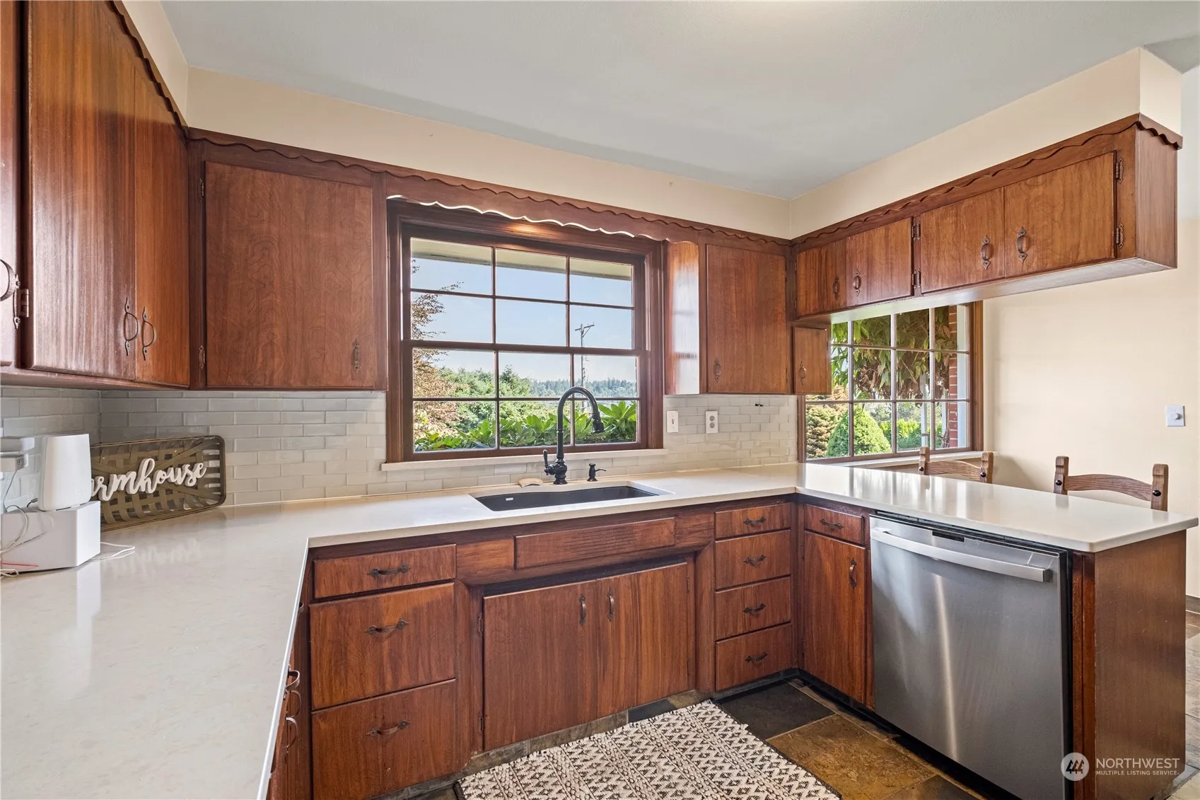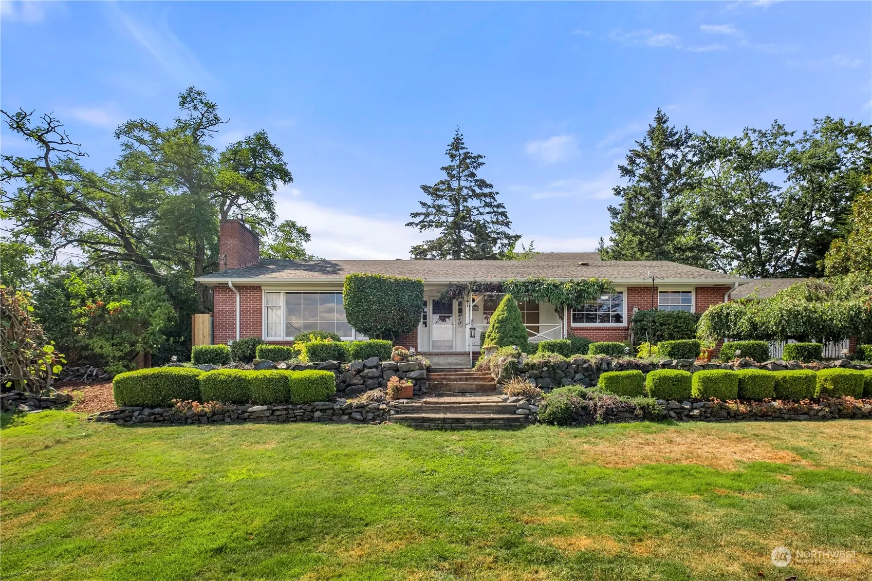 Exceptional mid-century Brick Rambler with full basement and Mountain View! Main Floor Primary Bedroom & updated bath, heated floors. Original hardwoods, built-ins, trim. Updated kitchen, stainless steel appliances, new refrigerator, quartz counters, slate flooring. 2nd main floor bedroom & Den/Office. Gas Fireplace living rm. Lower level offers separate entrance, potential MIL, rental opportunities. Kitchenette, laundry area, game room, exercise rm, bedroom/craft room, gas fireplace. Wonderful expansive backyard deck, gazebos for summer and year-around fun. RV parking. Large fenced yard, front and back. New heat pump/AC in 2020. New cedar fence. New Comp Roof soon. 2 car garage with 400′ loft space, power work bench included. Welcome!