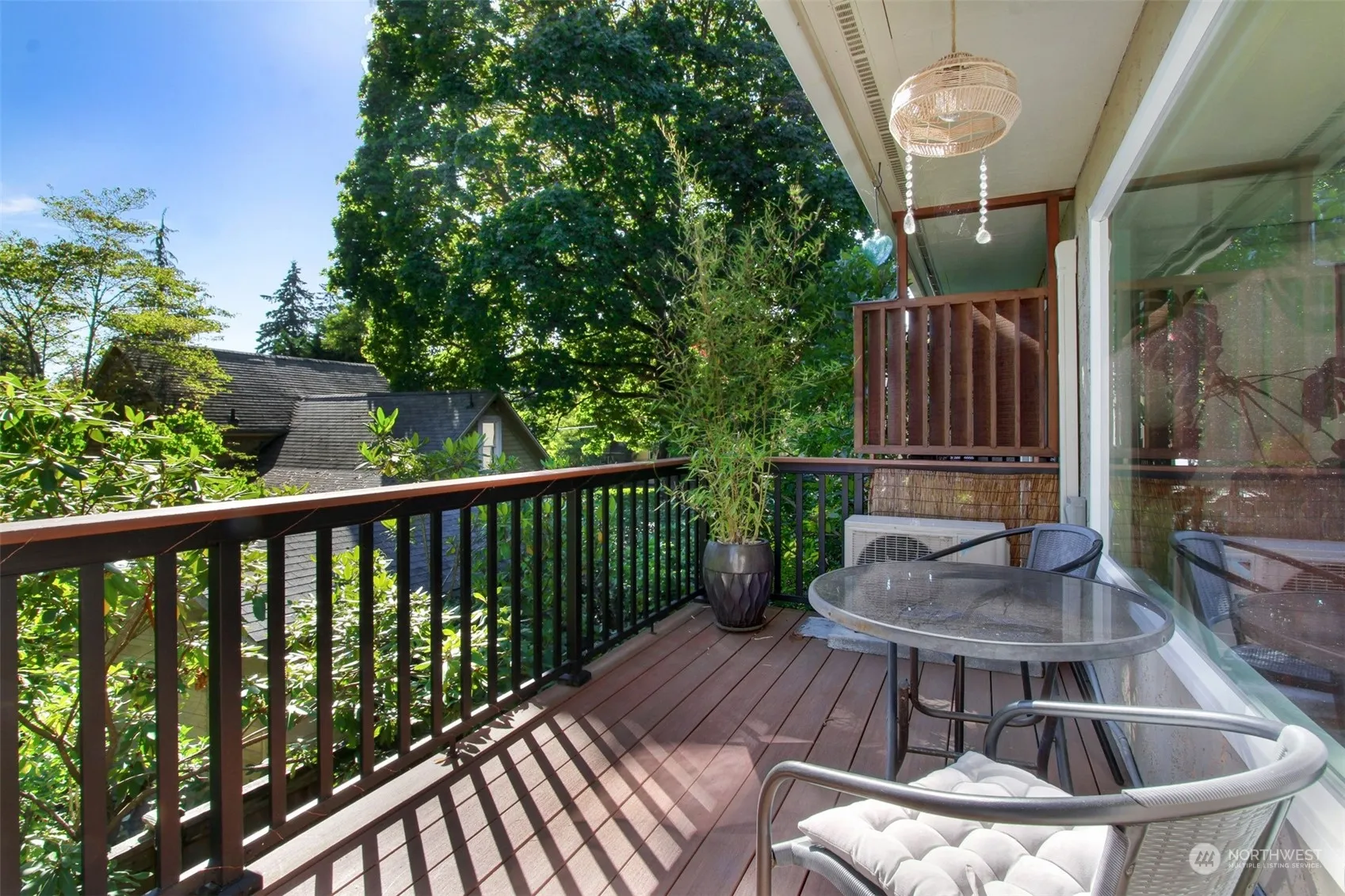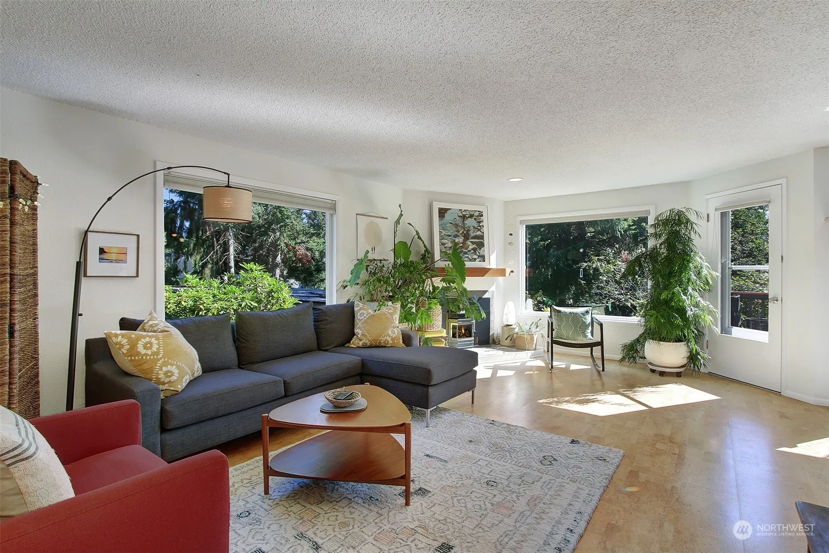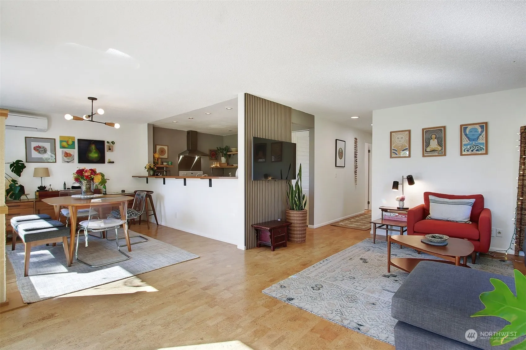 Welcome to this updated, 3 bedroom, 2 bathroom, spacious 1210 square foot condo w/2 parking spots. Located in the heart of downtown Bainbridge Island, this sought after condo includes a new efficient mini-split ductless heat pump, custom mantle & bar top. Year round natural light floods the interior space through picture windows & welcomes you into this corner, top floor condo. Designer paint colors, cork floors and recent upgrades add to the inviting, contemporary interior. Open floor plan w/adjoining kitchen & living areas. Garden/territorial views from various vantage points. Primary bedroom suite w/large walk-in closet & spacious bathroom. 2 year old sunny, private, South facing deck is a peaceful sanctuary for entertaining or relaxing.