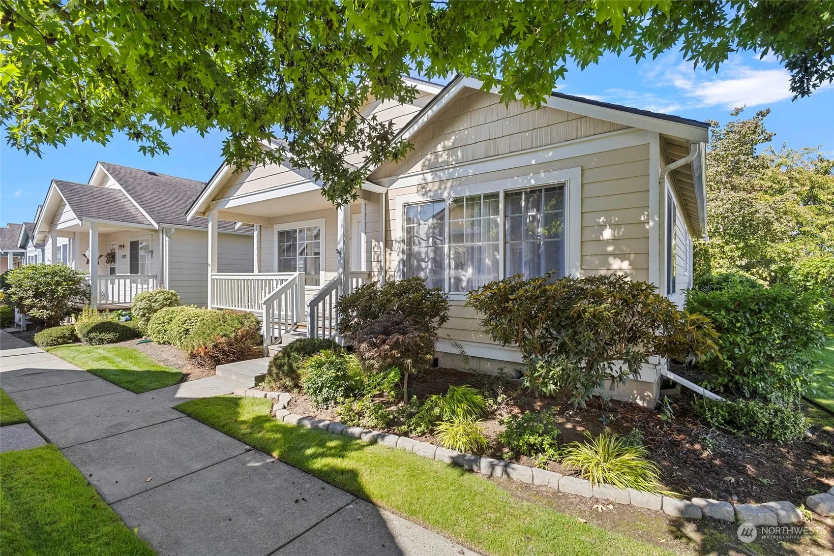 Adorable rambler home in a highly desirable 55+ community in the heart of Skagit Valley! This home is privately placed at the end of its lane giving beautiful views out the kitchen, dining room, and livingroom windows. This home offers the perfect amount of space, allowing for 2 bedrooms, 1 full bathroom off the main, and a 3/4 bath to be shared. The kitchen has ample counter space & a large pantry as well as a center island for guests to sit & visit, or dining room space for formal dining. Sit peacefully on the front deck and enjoy your coffee, read a book, or simply just listen to natures ambiance. A back deck can also be enjoyed with space to allow a BBQ. Complete with a 2-car garage and side yard that wraps around with space to garden!