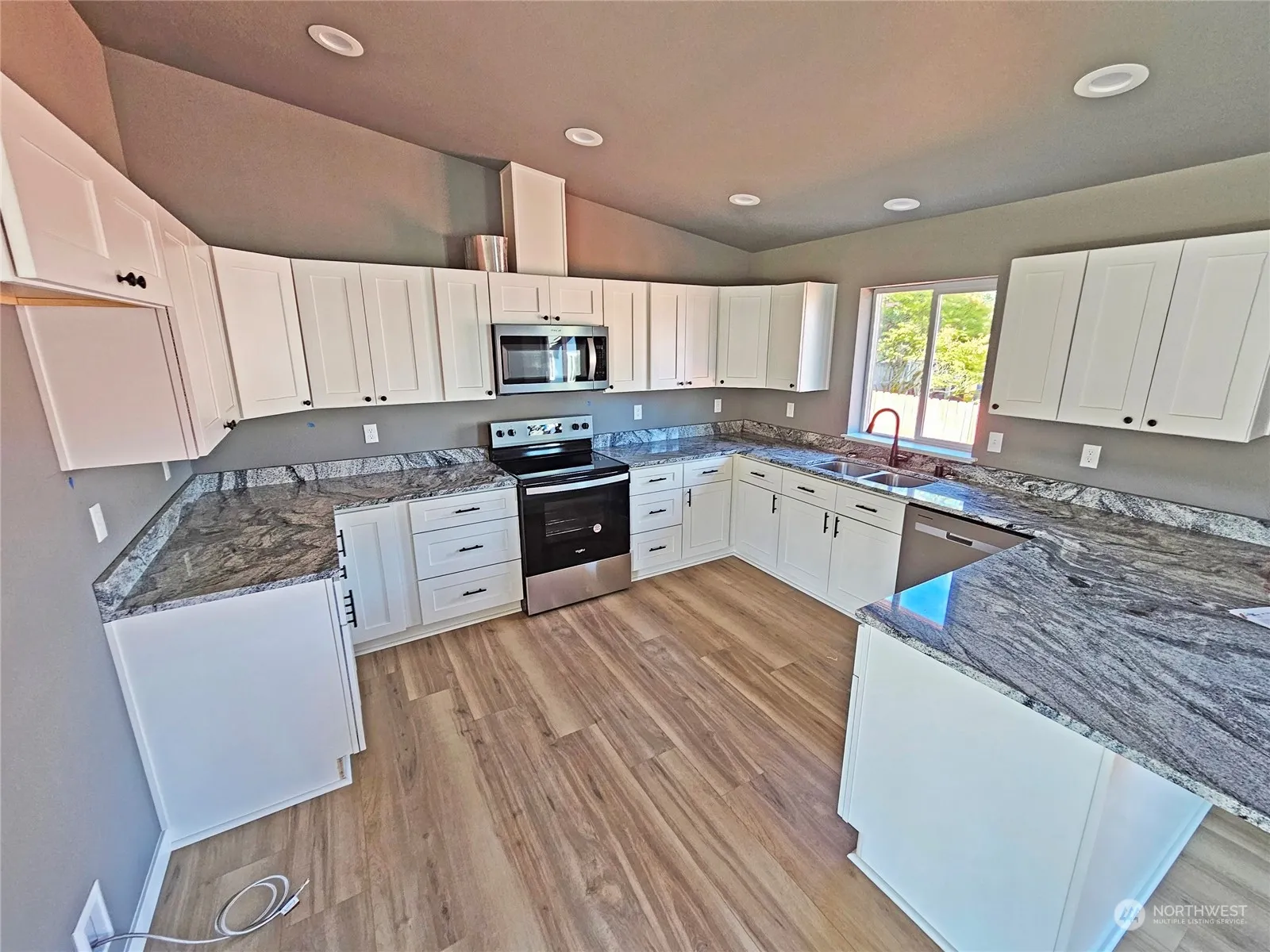 Interest rates just lowered Sept 18th! Save big $ for 30 yr fixed! New 1600 sq.ft. just now completed. Quaint little town of Oakville just 80 min from Ocean beaches, 5 min to the 100,000 acres of Capitol Forest trails, 3 min to a boatlanding onto the fishfilled Chehalis River. Lots of nearby rec opportunities. Finishes inc ample white cabinetry topped wi rich Granite countertops, upgraded fixtures. Stainless appliances. Spacious great rm wi vaulted ceilings. 3 bdrm/2 full baths. Primary bdrm has walkin closet, dual vanity sinks. Heatpump forced air for economical heat/AC. 30 yr roof. Extended homeowners warranty. Oakville city water, some of the best quality and lowest rates in the region. Grays Harbor PUD, some of the lowest elect rates.