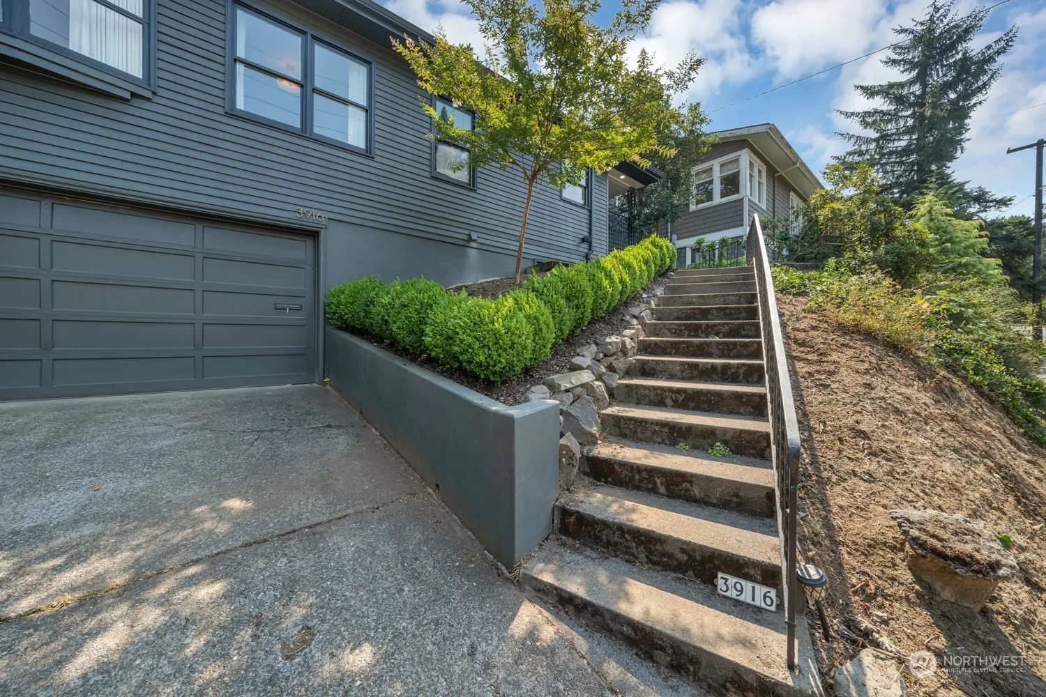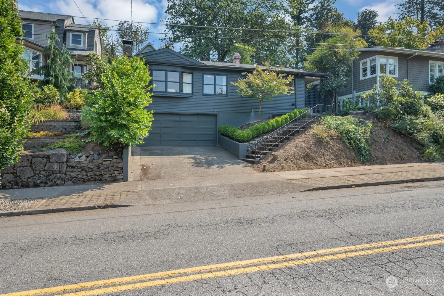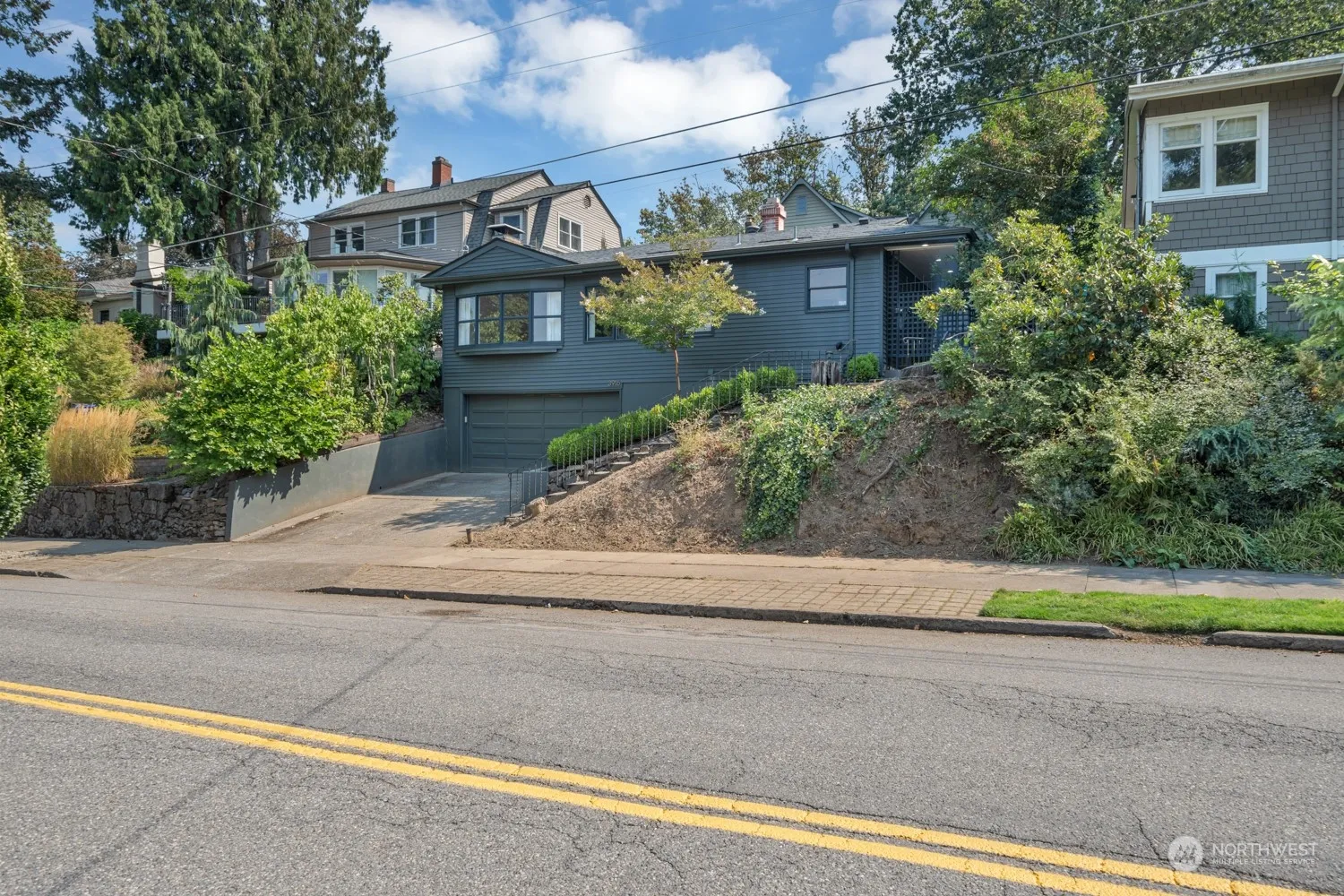 Perched on top of Council Crest Drive, this sophisticated diamond in the rough awaits your finishing touches. Gated courtyard entry leads to an in-ground pool and spacious patio perfect for summer entertaining. Unique floor plan features open living & dining room, family room or nook off kitchen, 3 bedrooms on the other side of the house, plus one bedroom/den off garage. Highly rated schools, 2 parks nearby, just minutes to the city and OHSU.