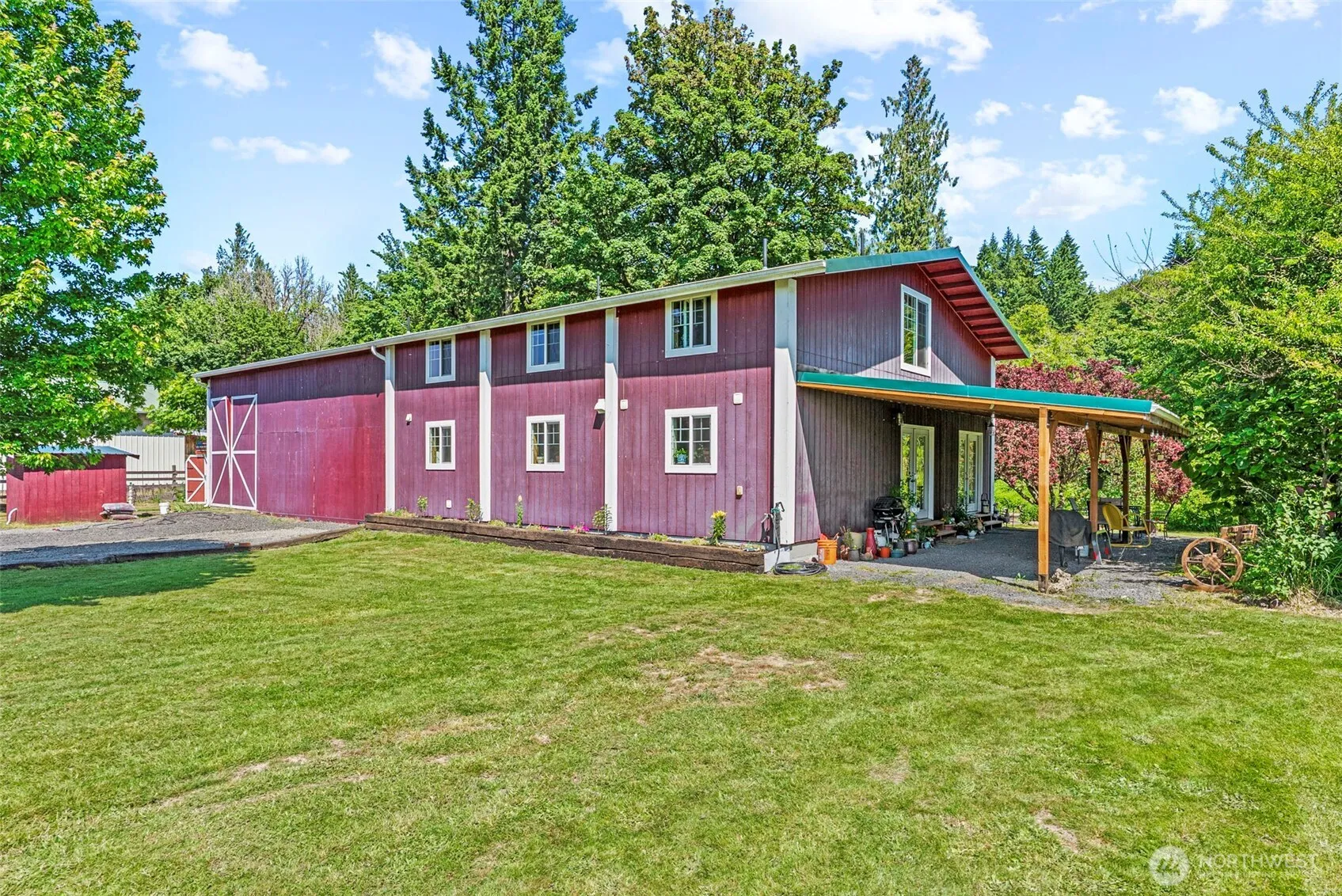 Longing for a BARNDOMINIUM?? Never mind starting from scratch – avoid the time, work & expense of land prep and jump on this well built, craftsman-style barndo! HUGE 1296′ shop w/2592 sq ft of living quarters, 4 potential bedrooms, 2 spacious baths (one on each level) FLEX space that seems endless. Gorgeous timbers grace the great room w/high ceilings, wood burning stove & wood floors. A dream of a kitchen appointed w/farm sink, granite tops, white cabinetry beautiful tile backsplash & appliance suite. Set on 5 fenced acres w/pasture ready for the animals. Garden beds, orchard, shed, barn & more set along Olequa Creek bank w/353 ft frontage. Fish, float, enjoy visiting wildlife or simply relish the privacy & beauty of this amazing retreat!